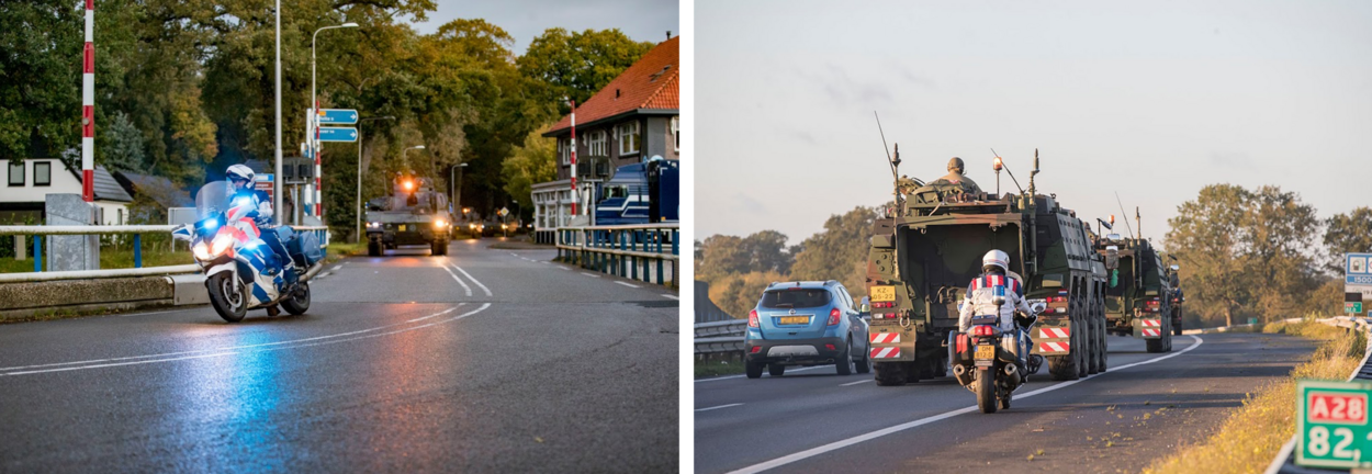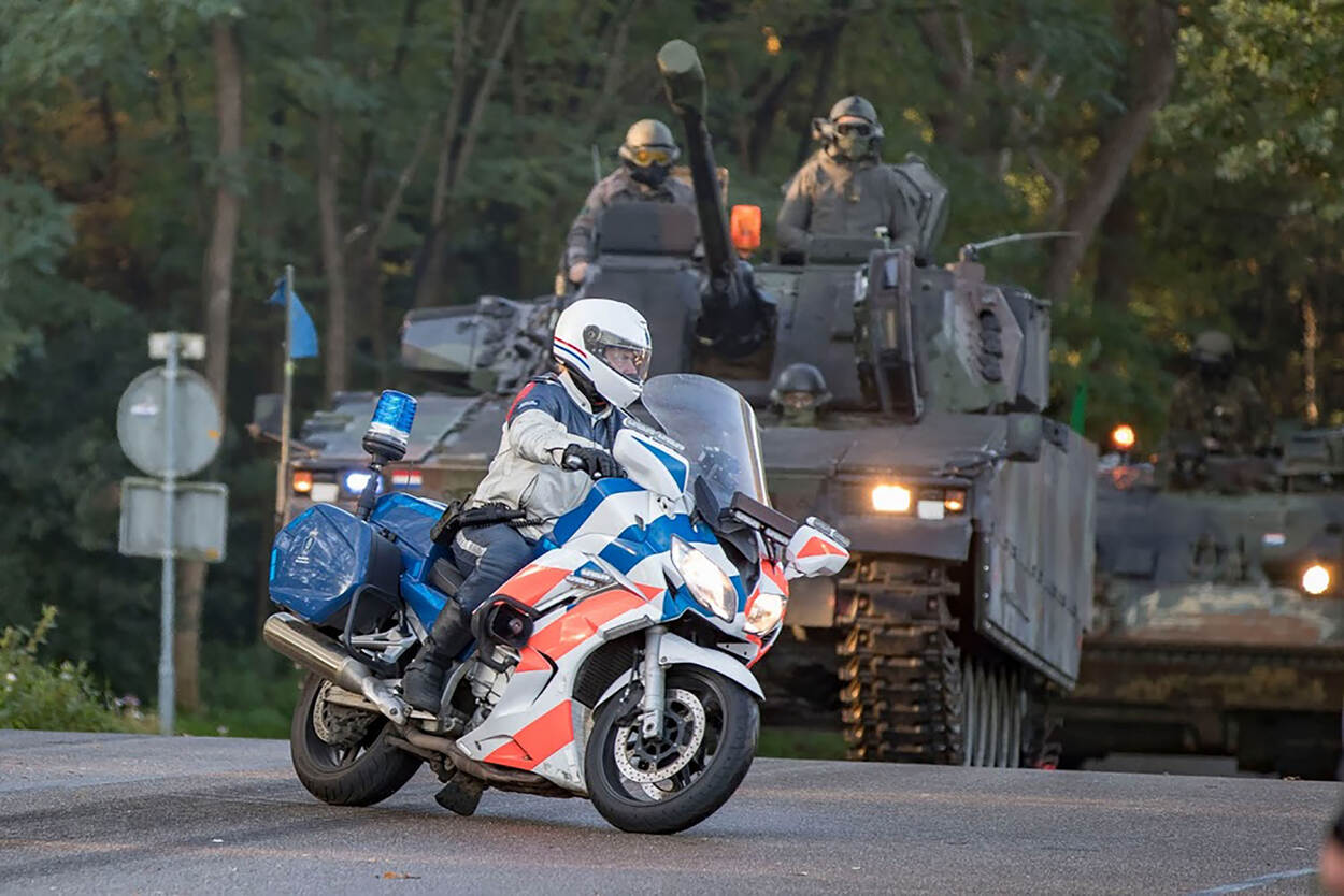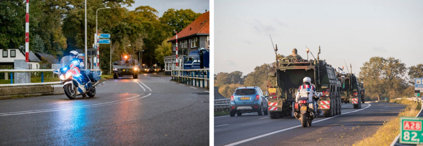 De motorpool van de KMar heeft 22 oktober een militaire colonne over de openbare weg begeleid van Havelte naar de Leusderheide bij Amersfoort. Het transport bestond uit meer dan 20 gevechtsvoertuigen, waaronder CV90’s en een Leopard 2-bergingstank. De motorrijders begeleidden de voertuigen naar het oefenterrein voor de landmachtoefening Zebra Sword.