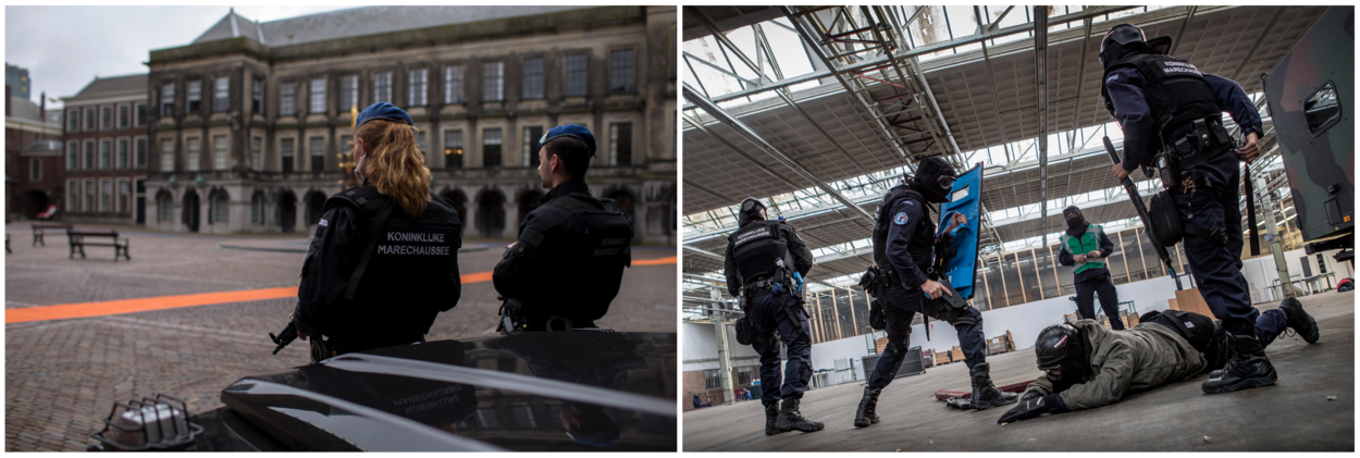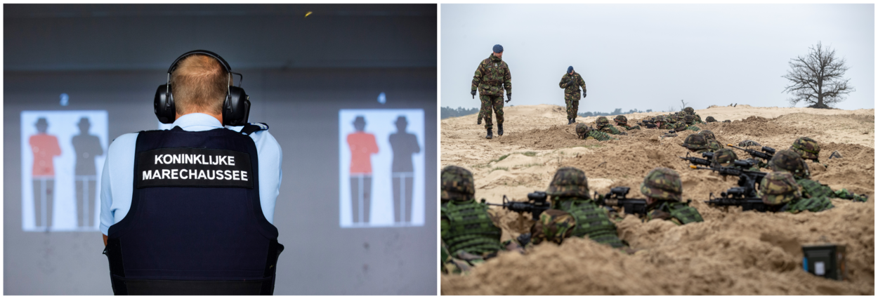 Medewerkers van de Hoog Risico Beveiliging (HRB) en Gewapende Beveiliging Burgerluchtvaart (GBB) beantwoorden binnenkort vragen in een taakbelastingonderzoek. Foto links: sergeant-majoor Hille Hillinga (archief). Foto rechts: sergeant-majoor Maartje Roos (archief).
