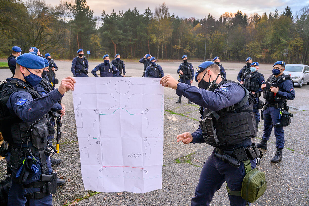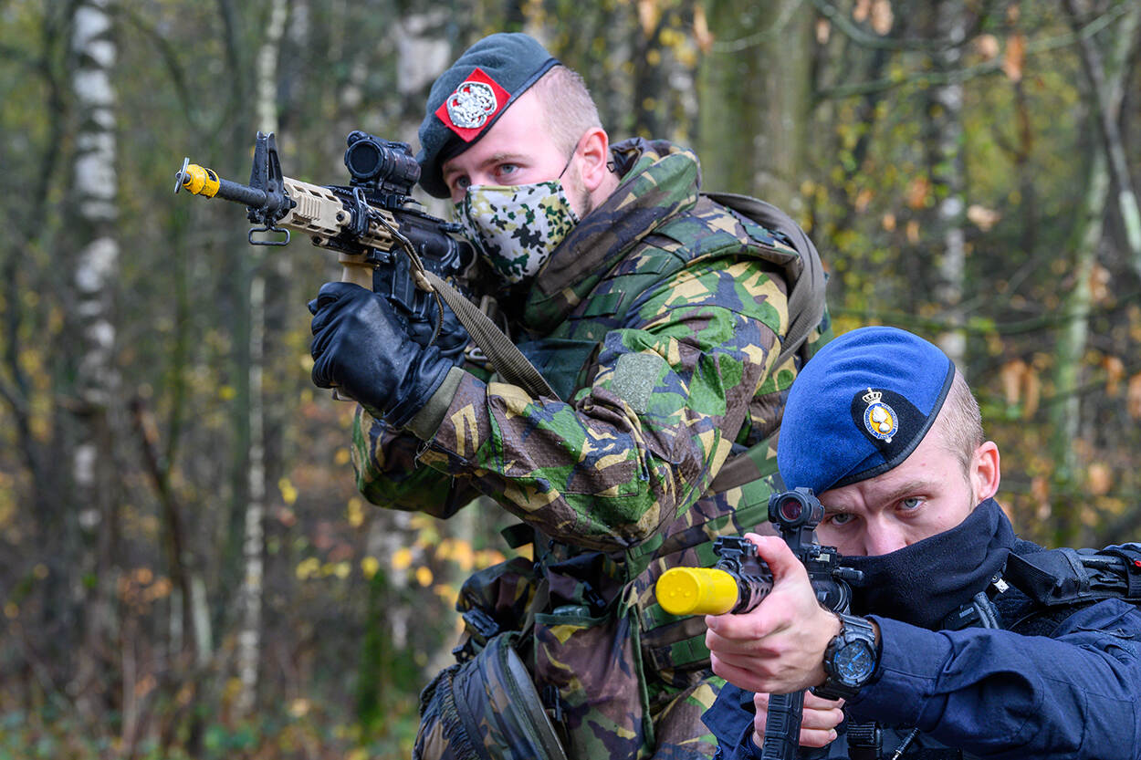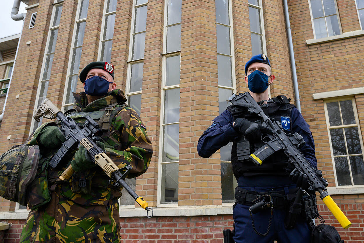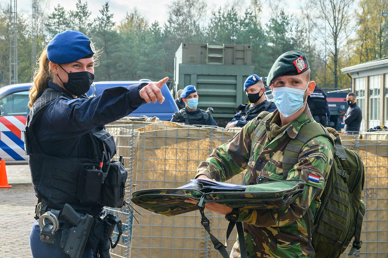 Collega's van het eskadron Hoog Risico Beveiliging (HRB) oefenen deze weken samen met landmachtcollega's terreurgevolgbestrijding. 7 donderdagen achter elkaar doorlopen alle HRB-pelotons de eindoefening om hun gereedstelling te testen. Tijdens de oefening NEXUS zijn leiderschapskwaliteiten en samenwerking met Nationale Operaties (NatOps) van de Koninklijke Landmacht het belangrijkst.