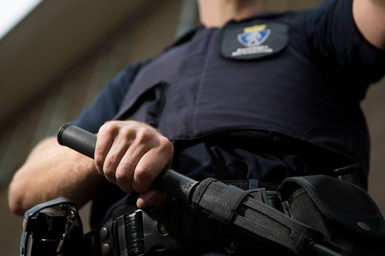 Foto: De wapenstok wordt in bruikleen verstrekt bij het bedrijfsbureau op de brigade.