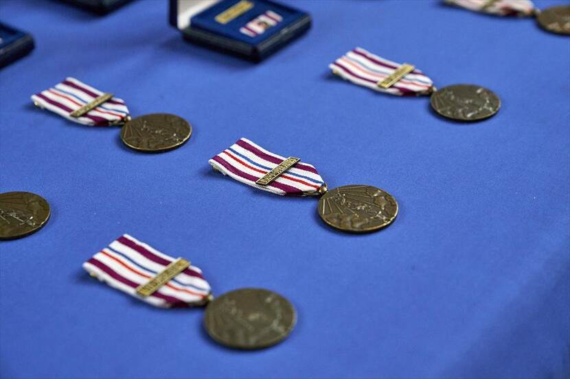De betreffende collega’s kregen naast de medaille ook een pakket dat bestaat uit een oorkonde, een anjer, een ‘alternatieve handdruk’ van de missiemanager en een bon voor een taart. Deze bon is aangeboden door de Defensie Organisatie Thuisfront. Zo is er thuis toch nog een klein feestje.