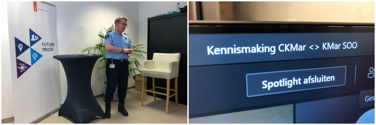 “Ik ben erg blij dat ik gebruik kan maken van de mogelijkheid om de SOO te volgen en mij zo verder te ontwikkelen tot officier. Tijdens de opleiding, die een half jaar duurt, wordt uitgebreid aandacht besteed aan het thema leidinggeven. Een opdracht was om binnen en buiten de KMar gesprekken te voeren met leidinggevenden. Zo kunnen we ons breed oriënteren op dit thema, ons blikveld verruimen en netwerk vergroten. Iedere cadet heeft een steentje bijgedragen aan het programma. Zo heb ik de ontmoeting met CKMar opgestart. Het resulteerde in een video-overleg. We spraken met hem over leidinggeven in de breedste zin van het woord. CKMar gaf aan dat - als het weer mogelijk is - het gesprek wat hem betreft zeker een vervolg krijgt in de vorm van een fysieke bijeenkomst.