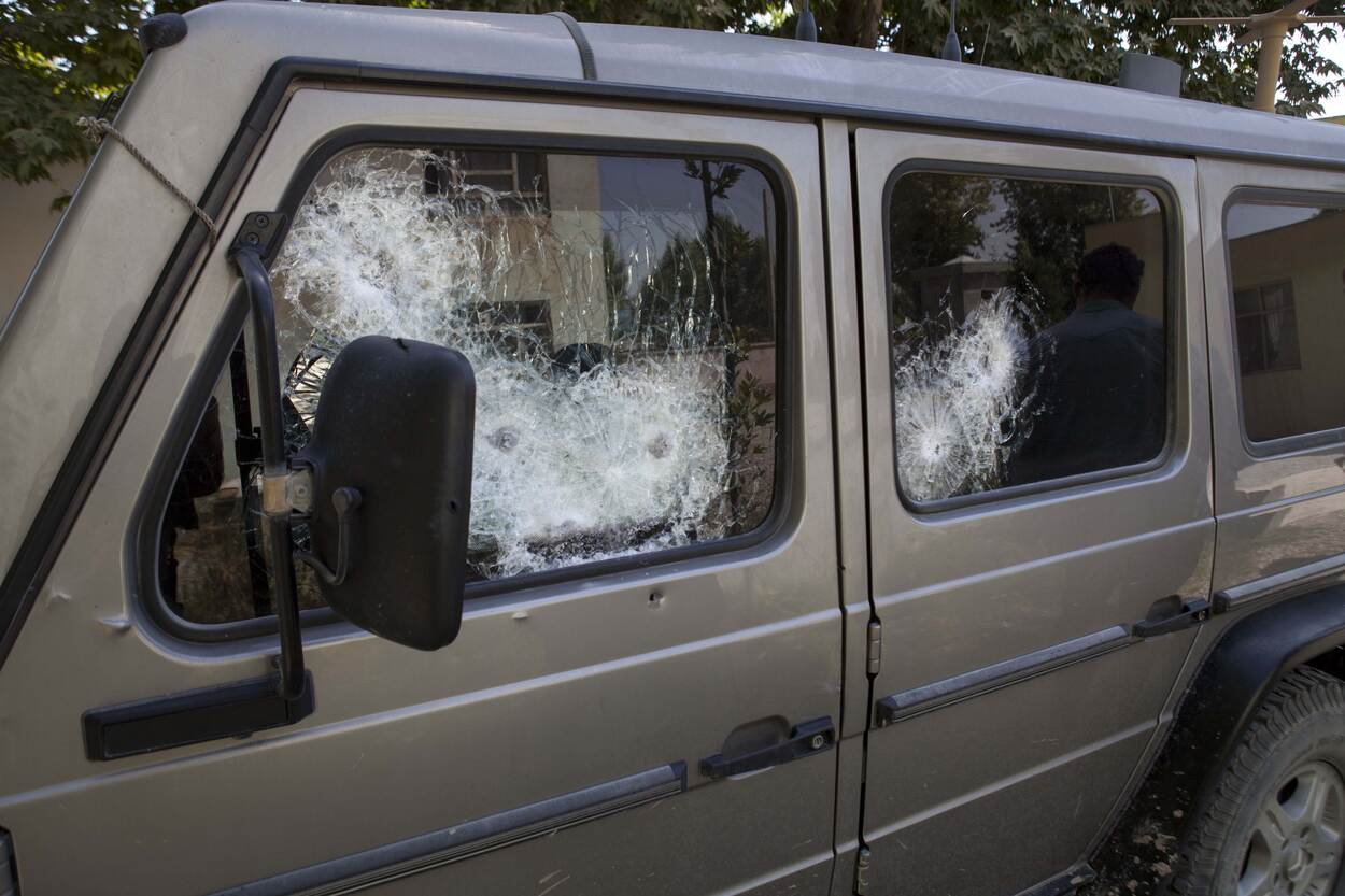“Een van de mannen wilde mijn portier openen, dat is natuurlijk geen optie. In een splitsecond besloot ik het voertuig in zijn achteruit te zetten en gaf gas. De man bij het portier trok zijn AK47 en begon op amper een meter afstand vol op mijn raam te schieten. Ook de anderen namen ons voertuig onder vuur. Ze stonden in een L-vorm om ons heen. We werden van alle kanten beschoten. Terwijl ik achteruitreed, zag ik dat een van de Afghanen een RPG (een draagbare granaatwerper) op ons voertuig richtte. Ik realiseerde me dat een RPG-granaat tussen de 50 en 70 meter nodig heeft om ‘scherp’ te stellen en te exploderen. Er was dus nog maar een mogelijkheid: Vol gas vooruit, afstand verkleinen tot aan de RPG! Terwijl we nog steeds werden beschoten, reed ik door de hinderlaag heen. Al slingerend bereikten we de stad. Het voertuig was zwaar beschadigd: versplinterde ruiten en een lekke band, de stuurbekrachtiging werkte niet meer, de tank lekte en de rem was kapot. Ook waren de communicatiemiddelen uitgevallen, bleek dat ze onze antenne hadden geraakt. Het laatste dat de andere collega’s hadden gehoord, waren de kogelinslagen in ons voertuig en op het raam. Ze kregen te horen: troops in contact, wait out, voor hen ook een zeer moeilijk moment.”