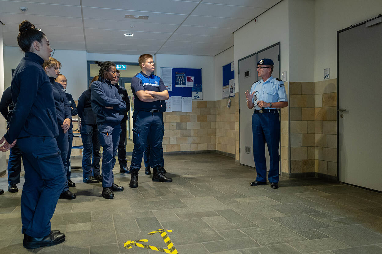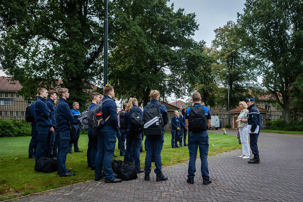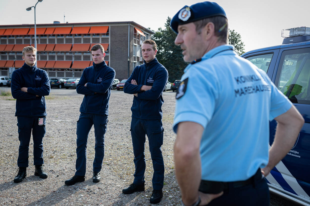 Al tijdens je opleiding stage mogen lopen bij je toekomstige werkgever. 28 studenten van het Regionaal Opleidingscentrum Landstede uit Zwolle kregen de afgelopen 3 weken die kans. Als onderdeel van de opleiding Handhaver Toezicht en Veiligheid KMar werd de poort van het Opleidings-, Trainings- en Kenniscentrum Koninklijke Marechaussee in Apeldoorn voor hen geopend. Een mooi moment voor de studenten om alvast te ervaren hoe het er in de wereld van de Marechaussee aan toegaat. Fotograaf korporaal Gregory Fréni legde de eerste fysieke kennismaking tussen de studenten en de KMar vast.