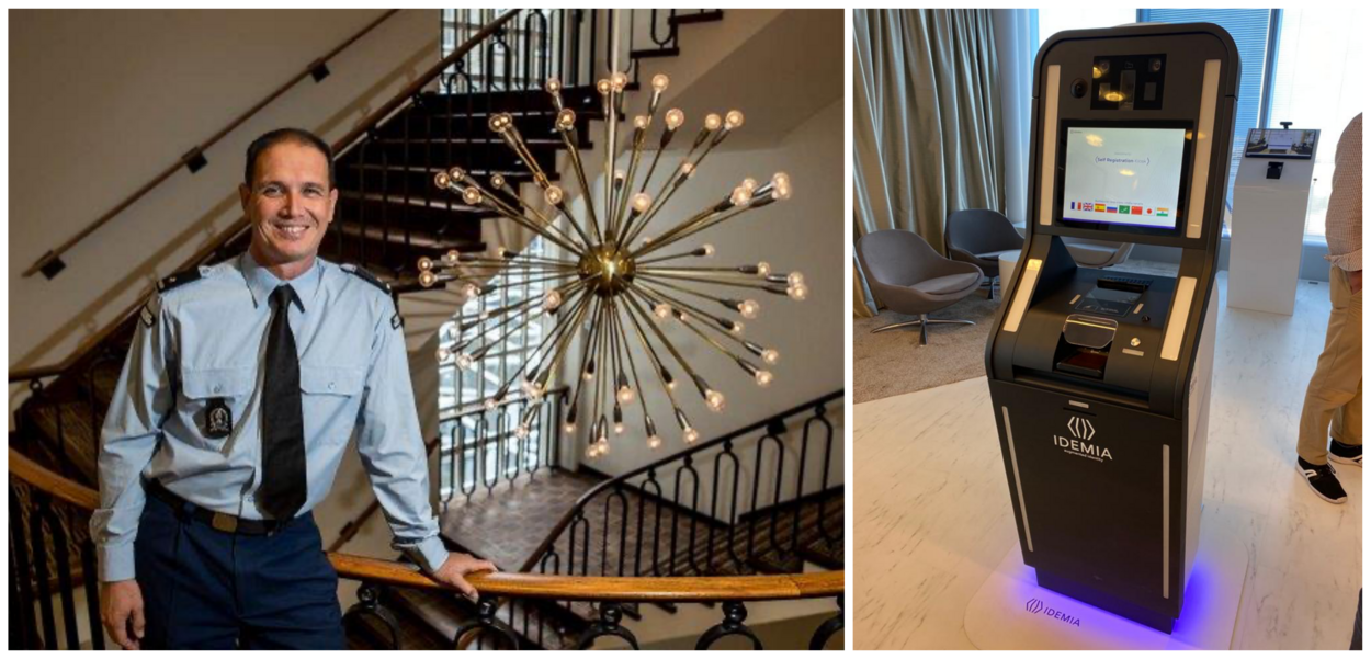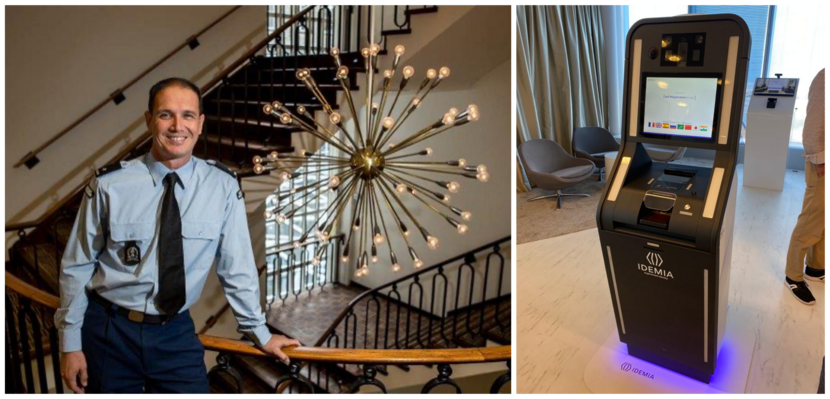 Links: Projectleider EES binnen de Marechaussee luitenant-kolonel Pieter Moret. Rechts: Om de grenswachter te ontlasten is een selfservice kiosk ontwikkeld.