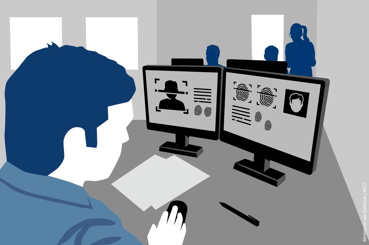 Voor spannende achtervolgingen en aanhoudingen moet je hier niet zijn. Op het moment dat de deuren van de kantoorruimte van de Infodesk opengaan, wordt het blikveld gevuld met bureaus, computers en monitors. Saai? Helemaal niet! Met de computersystemen - die een schat aan informatie bevatten - vormt de Infodesk het aanspreekpunt voor diepgaande informatieverzoeken van KMar-collega's en externe partners voor lopende (inter)nationale onderzoeken. De medewerkers nemen een aanvraag in behandeling, controleren deze, verzamelen de gevraagde informatie uit de beschikbare systemen en verstrekken deze zo snel, zorgvuldig en volledig mogelijk.