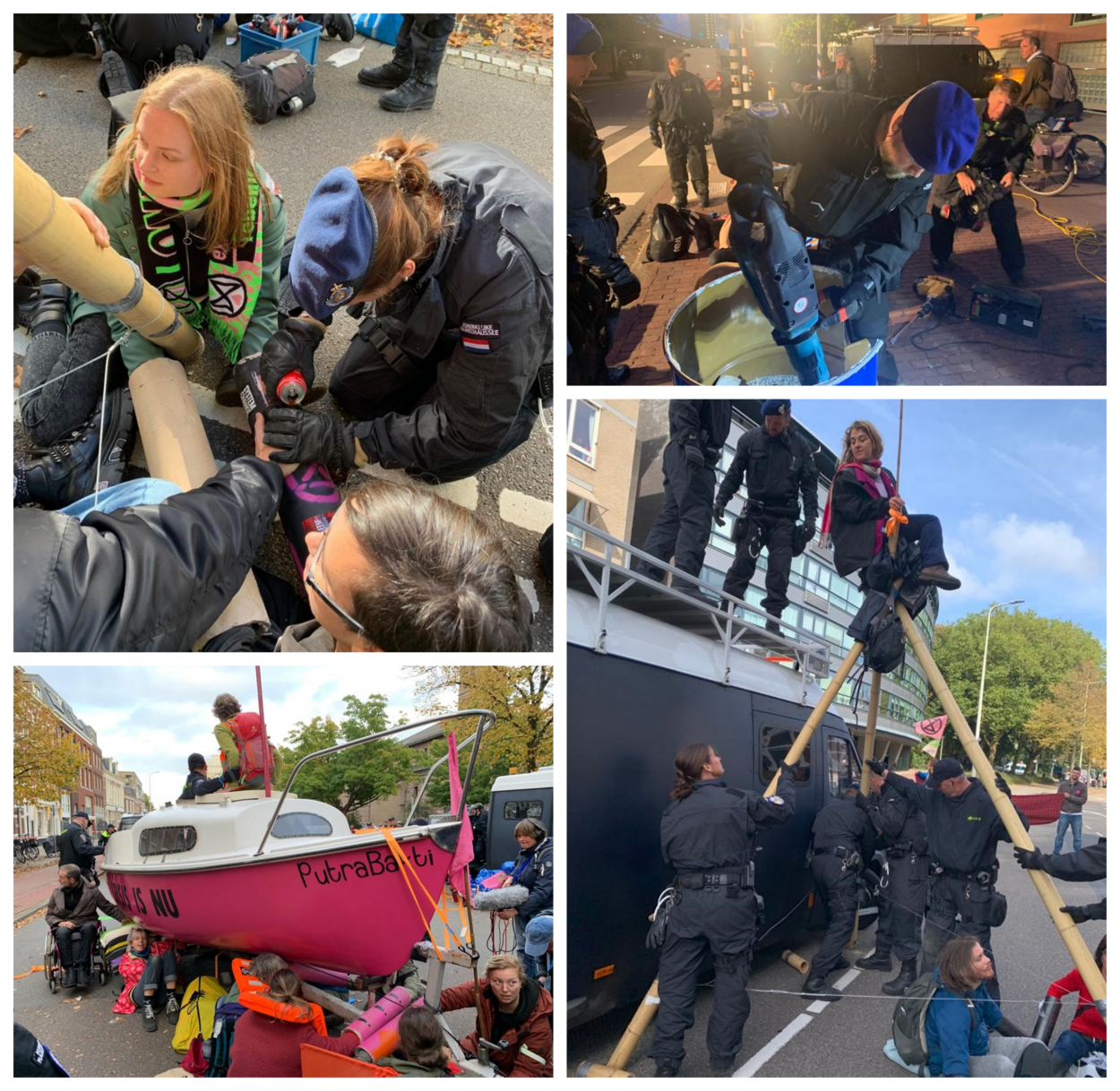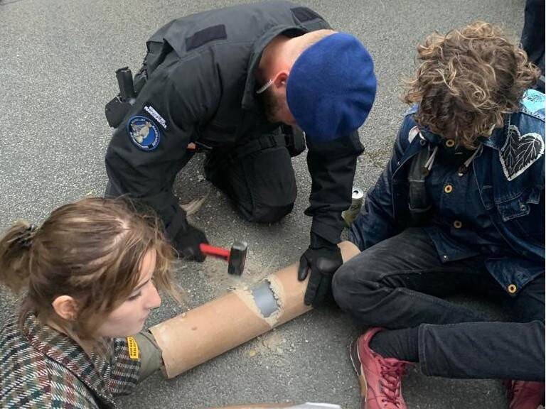 De technische specialisten van de Marechaussee hadden hun handen vol aan het verwijderen van de klimaatdemonstranten. Die hadden zich namelijk op allerlei manieren vastgezet op het asfalt. “Als je iemand had bevrijd, popte die even later weer ergens anders op”, vertelt Wiffrie. De TOG had haar materiaalbus meegenomen met allerlei soorten gereedschap om de mensen los te maken. De demonstranten hadden zich onder meer vastgelijmd aan vaten, aan de weg en aan elkaar. Met cola en aceton zijn zij heel voorzichtig losgeweekt en losgetrokken.