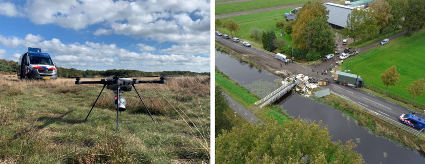 Martijn heeft de drone gebruikt tijdens een verkeersincident eind vorige maand bij de Drentse plaats Veenhuizen. Daar was een vrachtwagenchauffeur van Defensie met een aanhangwagen vol munitie in de berm terechtgekomen. De aanhangwagen kantelde en viel uiteen, waarna de munitie in de berm en in de sloot belandde. Een gebied van 300 meter rond de vrachtwagen was afgezet en de Explosieven Opruimingsdienst Defensie kwam ter plaatse om het gebied veilig te stellen.