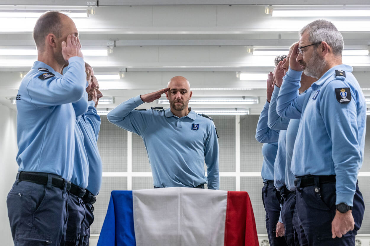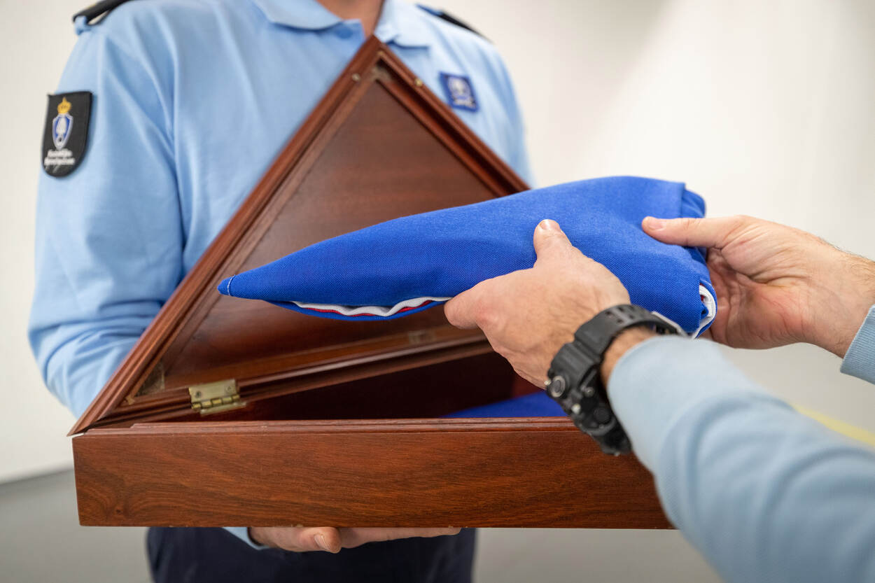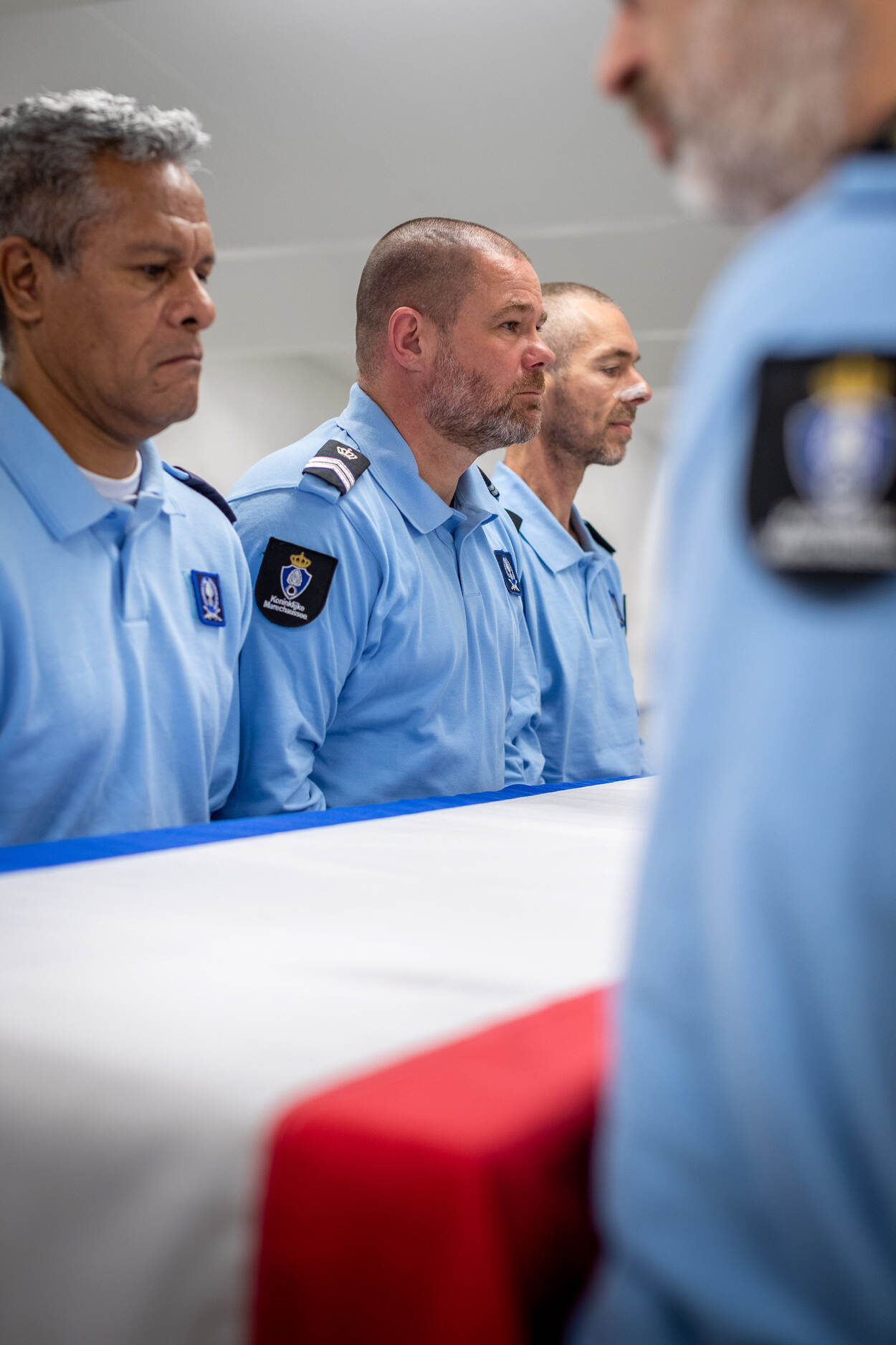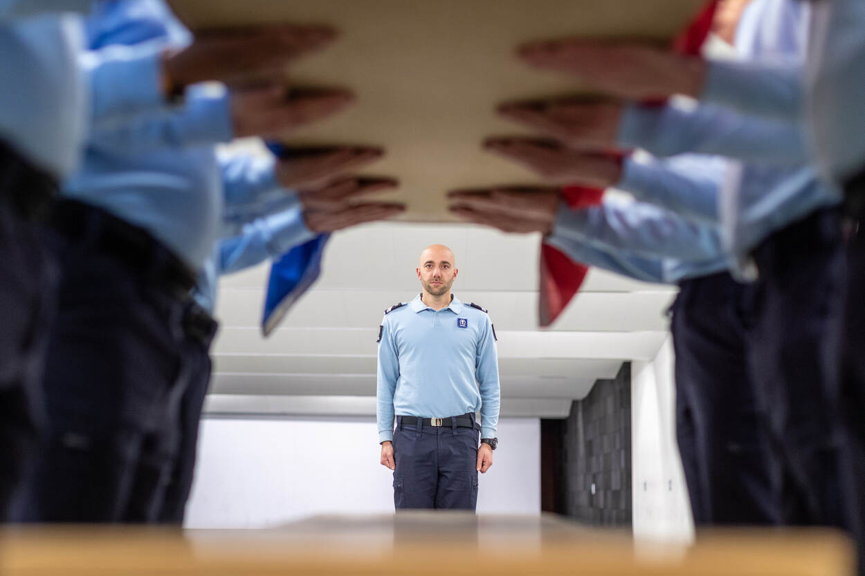 Lopen, tillen, dragen, zwenken en neerzetten. De Draagploeg KMar komt maandelijks bijeen om het dragen van een kist bij een uitvaartdienst van een overleden collega te oefenen. Een serieuze taak, maar er is ook ruimte voor humor ter ontspanning bij dit emotioneel best pittige werk. “Herstel, de kist leunt nu op de buik van Mark”, grapt de commandant Draagploeg als de kist een beetje scheef staat. Na enkele aanpassingen gaat het geheel weer waardig verder.