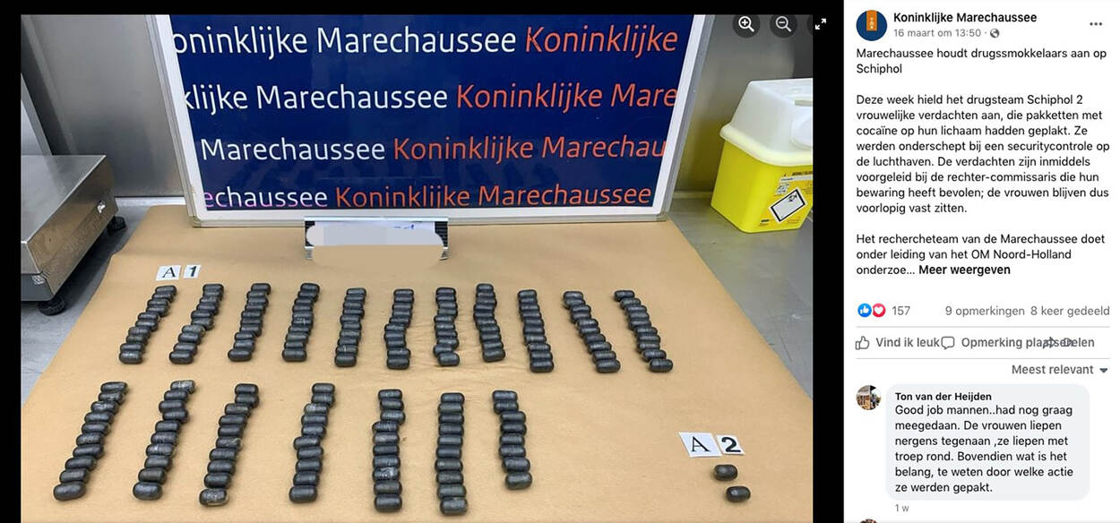 Marechaussee houdt drugssmokkelaars aan op Schiphol