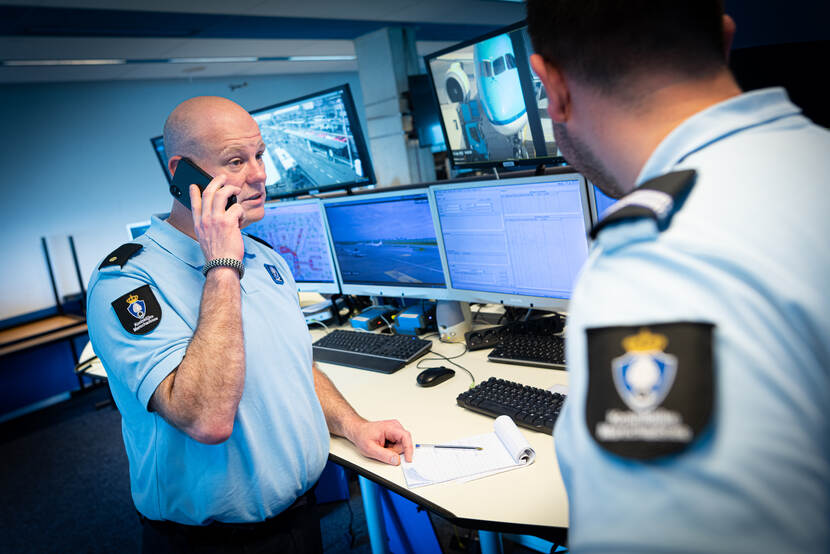"Als OvD-OC moet je continu het overzicht bewaren. Ik luisterde mee met de centralisten, won informatie in en deelde deze met alle essentiële partners, zoals onze Chief Operations en de OvD-P, maar bijvoorbeeld ook met de hulpdiensten op de luchthaven, de OvD-OC van de regionale politie-eenheid Noord-Holland en de CaCo (Calamiteitencoördinator) van de veiligheidsregio. Ik bleef daarnaast ook met mijn collega’s constant in scenario's denken. Wat is de huidige situatie? Wat is er nodig? Wat moet er gebeuren als er echt een explosief afgaat? Zijn we niks vergeten? Toen kwam er nog een melding binnen van een onbeheerde tas die op slechts 2 gates afstand van 'ons' vliegtuig stond. Cameratoezicht had inmiddels de bommelder in beeld en stelde vast dat de man de luchthaven met een bus had verlaten. Toen werd het ook voor ons in de meldkamer wel even spannend. Men zocht met man en macht naar de bommelder, de D-pier op de luchthaven werd ontruimd en het vliegtuig gesweept. Ik was continu aan het telefoneren, voerde wel 60 telefoongesprekken in amper één uur tijd."