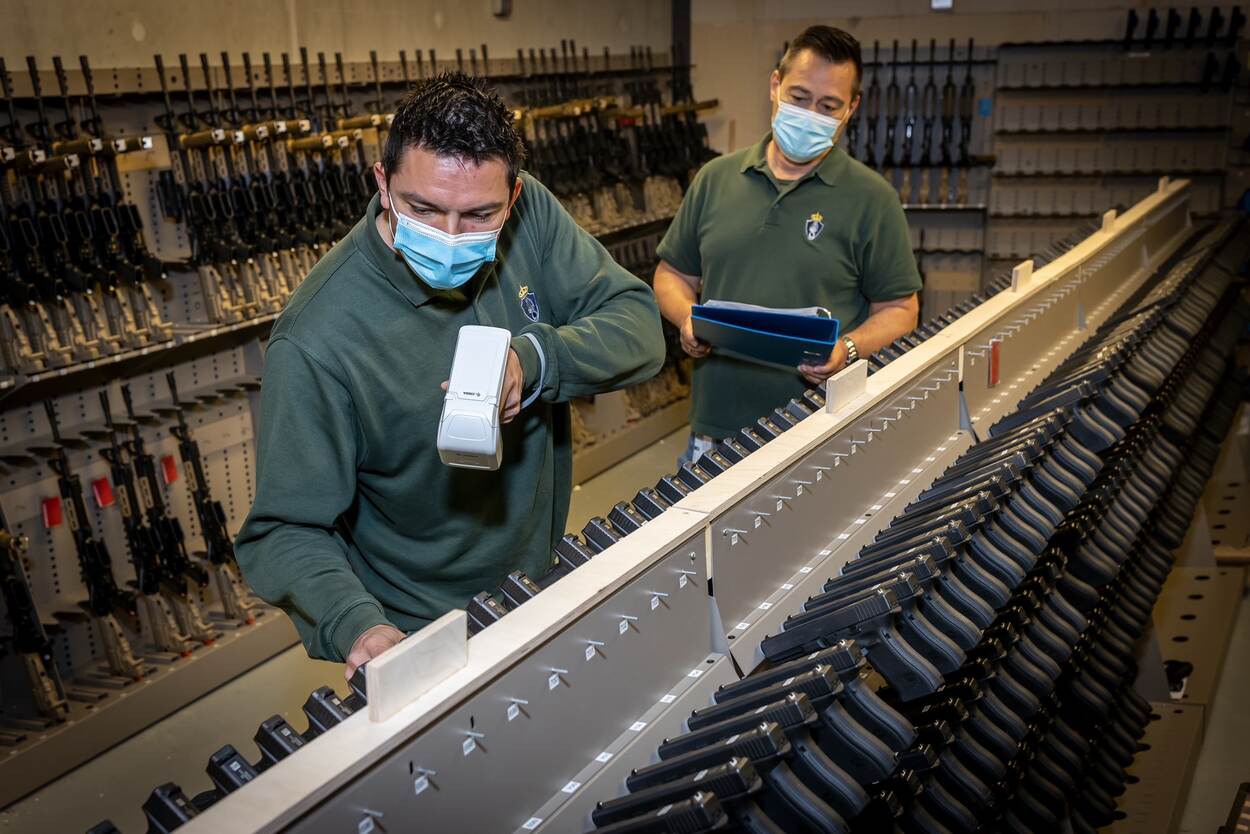 Op de brigade Veluwe vond een telling plaats in slechts 55 seconden. Ter vergelijking: anders waren 2 collega’s er zeker 2 uur mee in de weer geweest: lijsten printen, kluisjes openmaken, serienummers oplezen en controleren op de lijst. Dat is een tijdrovend proces. Nu scant de scanner door de kluisjes en wapenlades heen, dus tel uit je winst.