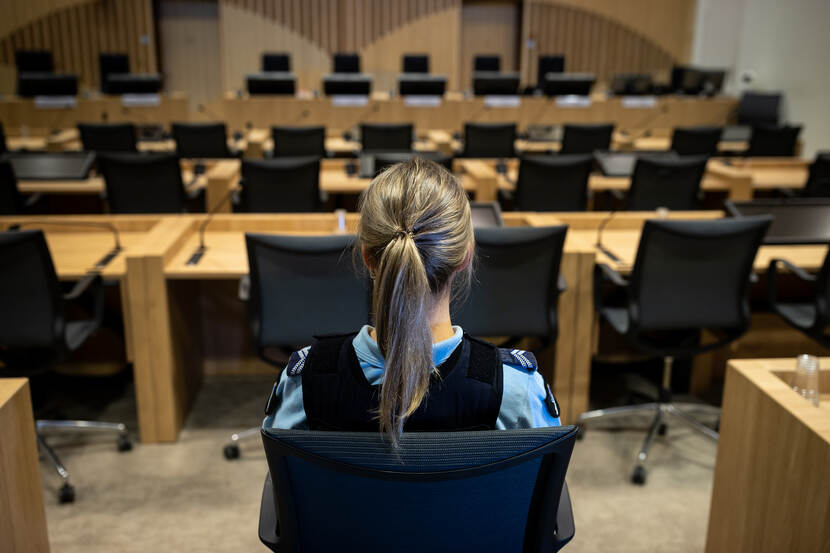 Ik zat tijdens een zitting achter in de rechtszaal om toezicht te houden op de veiligheid en de huisregels. Na 3 kwartier word je afgewisseld door een collega, omdat je slechts beperkte tijd gefocust kan blijven.”
