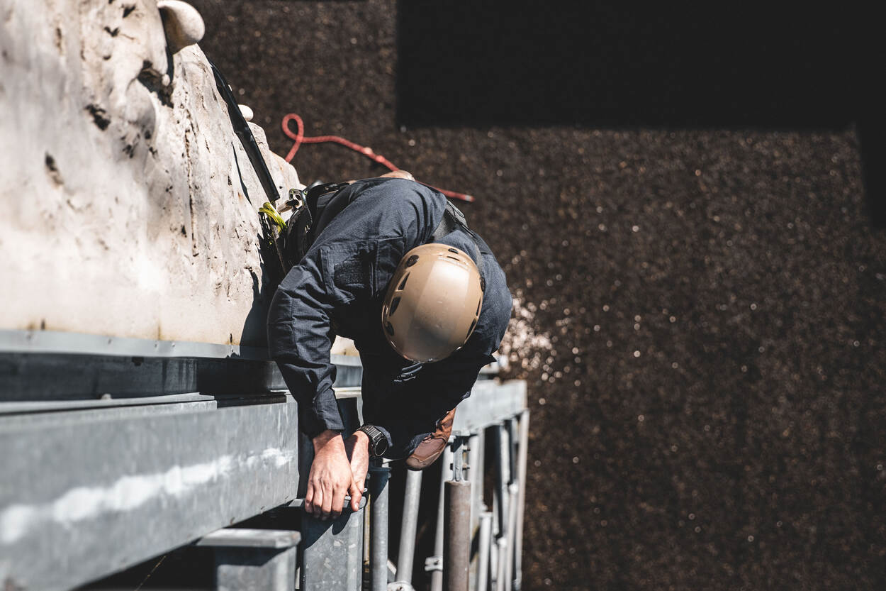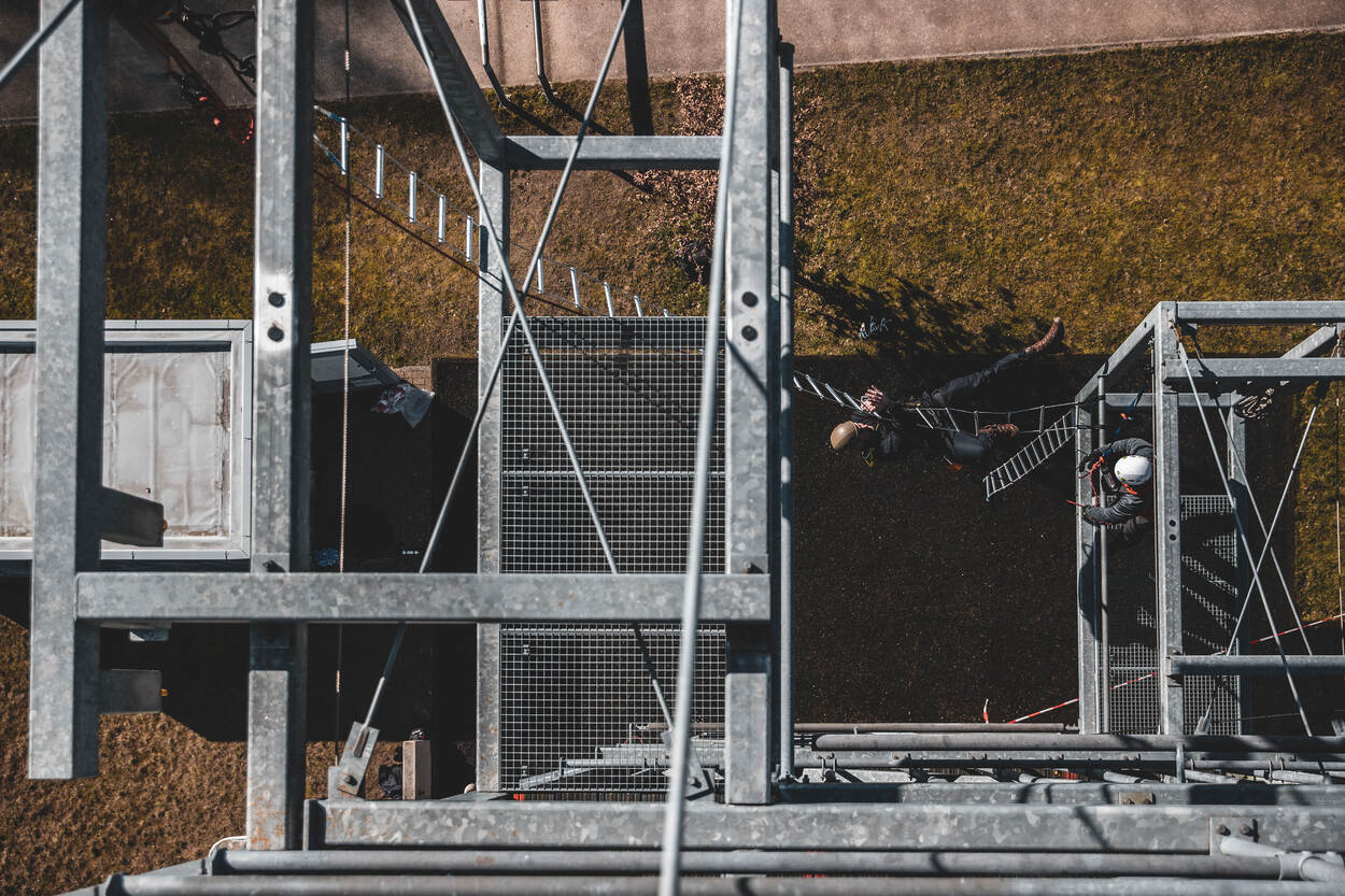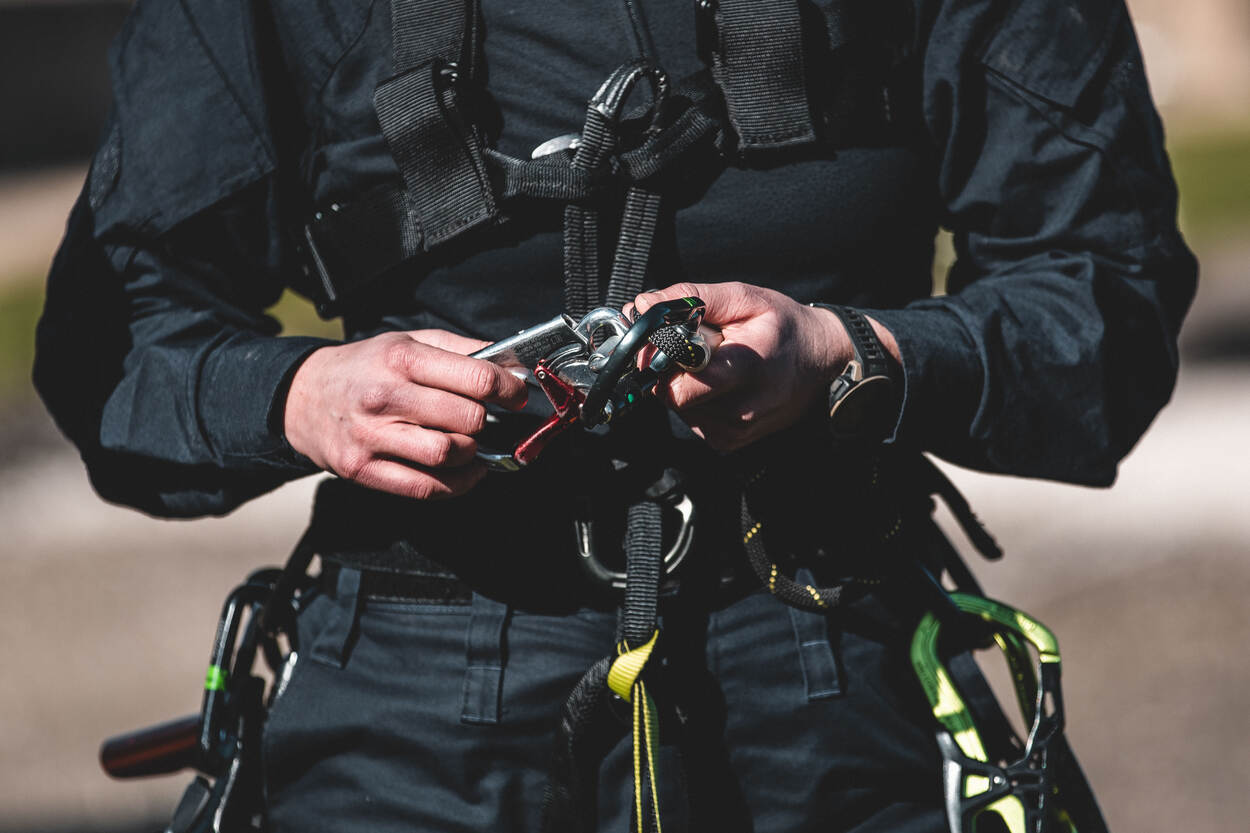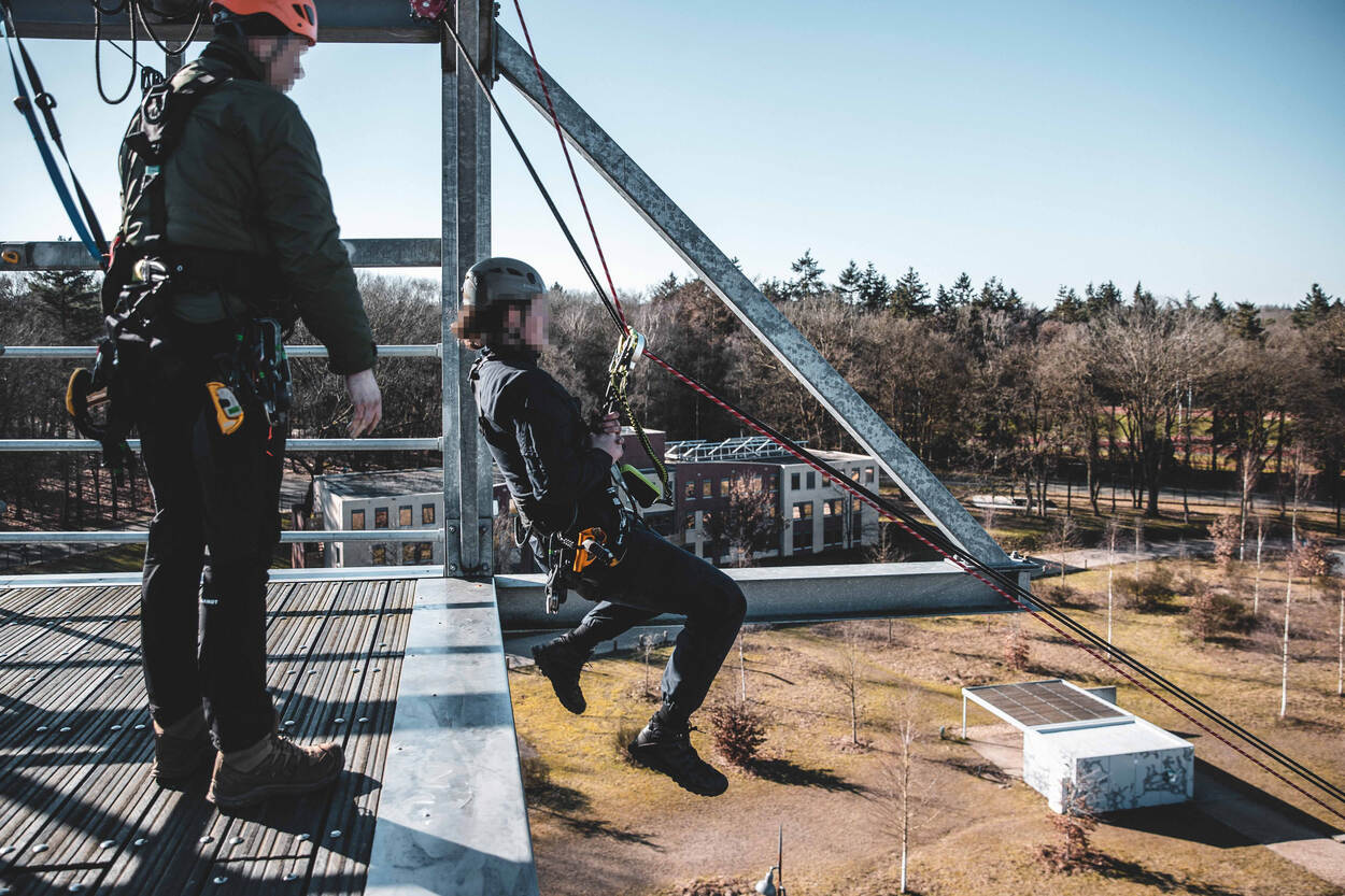 Adjudant Wouter, coördinator Werken op Hoogte BSB, bouwde met zijn team een circuit van 5 klimonderdelen. Elk deel werd vooraf uitvoerig getest, onder andere met een verzwaarde pop. “Veiligheid voor alles”, aldus de adjudant. Aan de deelnemers om de onderdelen te overwinnen. “Een training als deze is werken onder stress. De deelnemers leren ervaren wat dat lichamelijk, maar ook mentaal teweegbrengt.”