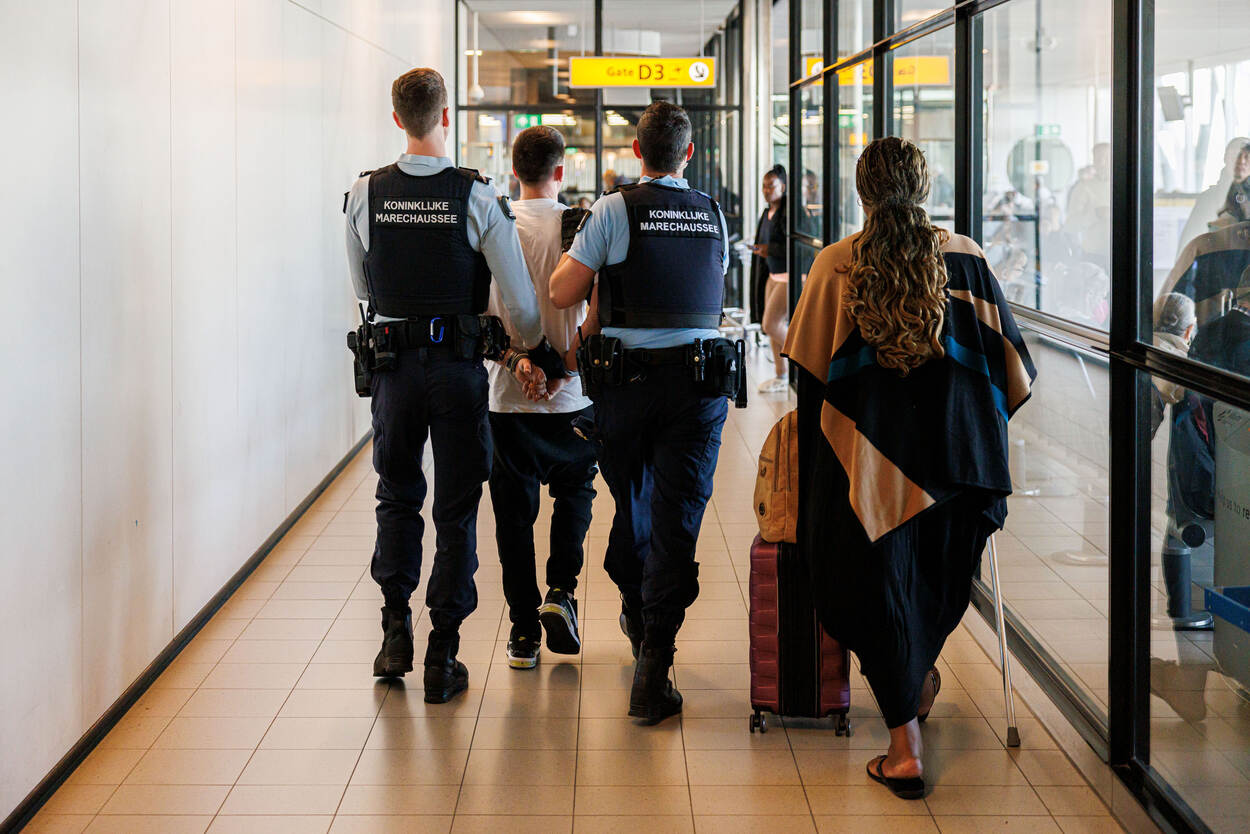 De collega’s van Grensbewaking houden zich overigens niet alleen bezig met de controle van paspoorten. Ook helpen zij passagiers die hun paspoort zijn vergeten of kwijtgeraakt. Zij kunnen, als ze aan de voorwaarden voldoen, bij een speciale KMar-balie een nooddocument halen. Daarnaast bewaken marechaussees ook de openbare orde en grijpen desnoods in. Dat blijkt wel wanneer 2 collega’s voorbij lopen met in hun midden een geboeide man. Aan zijn accent te horen een Brit. “Hij was een beetje opstandig”, vertellen ze aan Omar. Dus wordt de man, protesterend, afgevoerd om af te koelen.