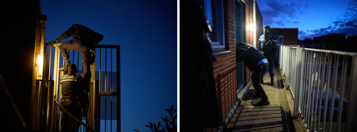 Hyperfocus wanneer KMar-collega’s in alle vroegte op pad gaan om enkele verdachten thuis aan te houden. Wat gaan ze aantreffen? Is er gevaar of niet? Maandenlang rechercheren en observeren komen op dit moment samen. Binnen liggen de verdachten, als het goed is, nietsvermoedend op één oor. In enkele minuten zijn de marechaussees binnen en worden de slaapdronken verdachten geboeid afgevoerd, terwijl hun huis wordt doorzocht op bewijsmateriaal.