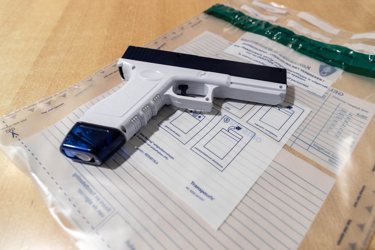 In zijn oortje hoort hij vervolgens dat er in iemands handbagage een ‘op een vuurwapen gelijkend voorwerp’ is aangetroffen bij de security. Dus gaan de collega’s richting de bagagecheck om te zien wat er aan de hand is. In de handbagage van een kind is inderdaad een verdacht object aangetroffen. En ‘op een vuurwapen gelijkend’ is ietwat zacht uitgedrukt. Het blijkt een waterpistool te zijn dat lijkt op een Glock 9mm-pistool. Oké, dit speelgoedding werkt op batterijen en is gemaakt van wit en blauw plastic. Daarnaast kloppen de afmetingen niet helemaal. Maar verder lijkt het net echt. Zeker als je hem zwart zou spuiten. Ook al is het gecertificeerd speelgoed, zoiets mag niet mee het vliegtuig in. Dus wordt het ding in beslag genomen. Enkele uren later is het weer raak; zelfde soort melding, zelfde soort waterpistool. “Kijk, voor € 18,- is zo’n ding via internet te koop”, zegt de opperwachtmeester, terwijl hij zijn telefoon in de lucht houdt met daarop de pagina van een webwinkel.