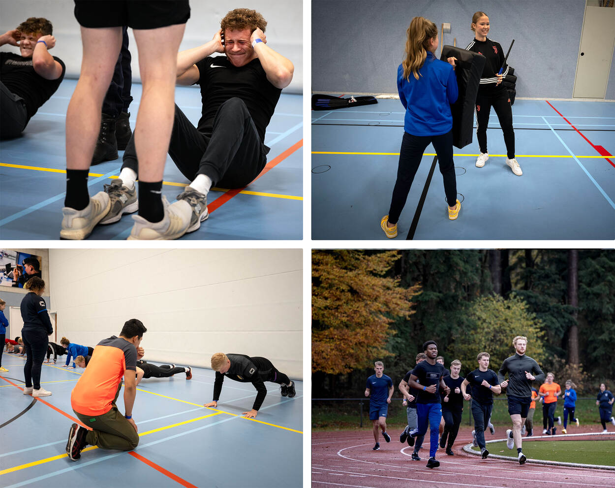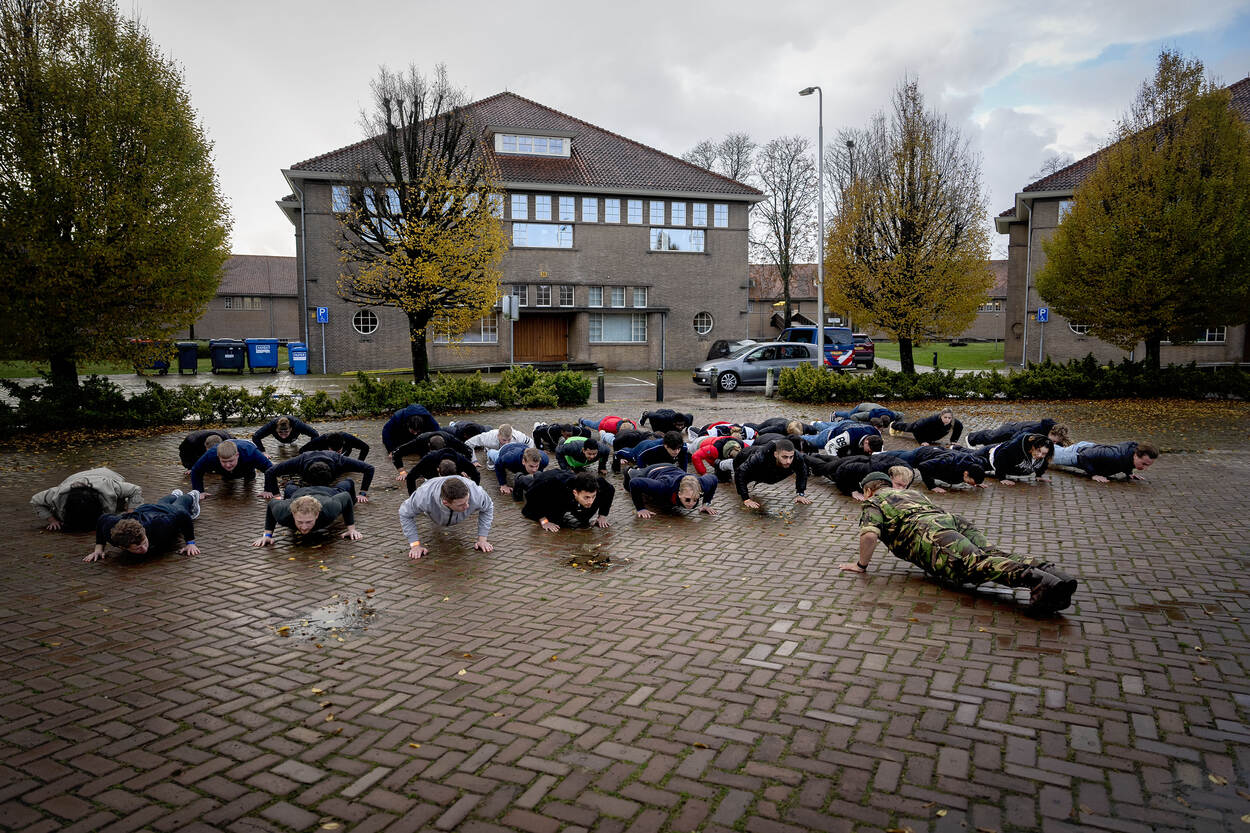 Push-ups, sit-ups en hardlopen staan er op het programma. Maar ook mogen de jongeren aan de slag met handboeien en een wapenstok.