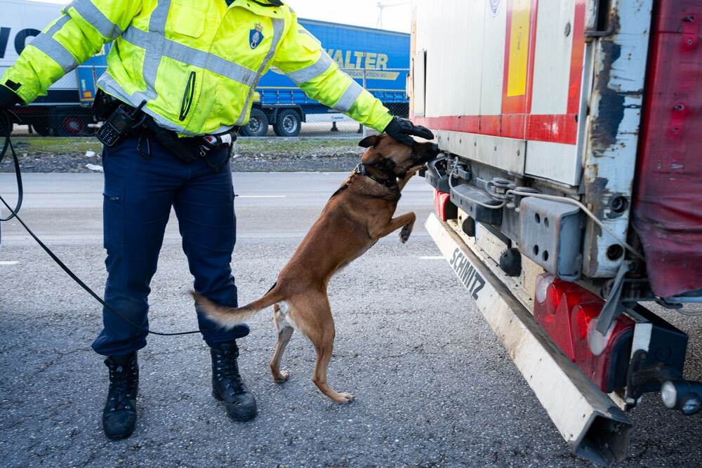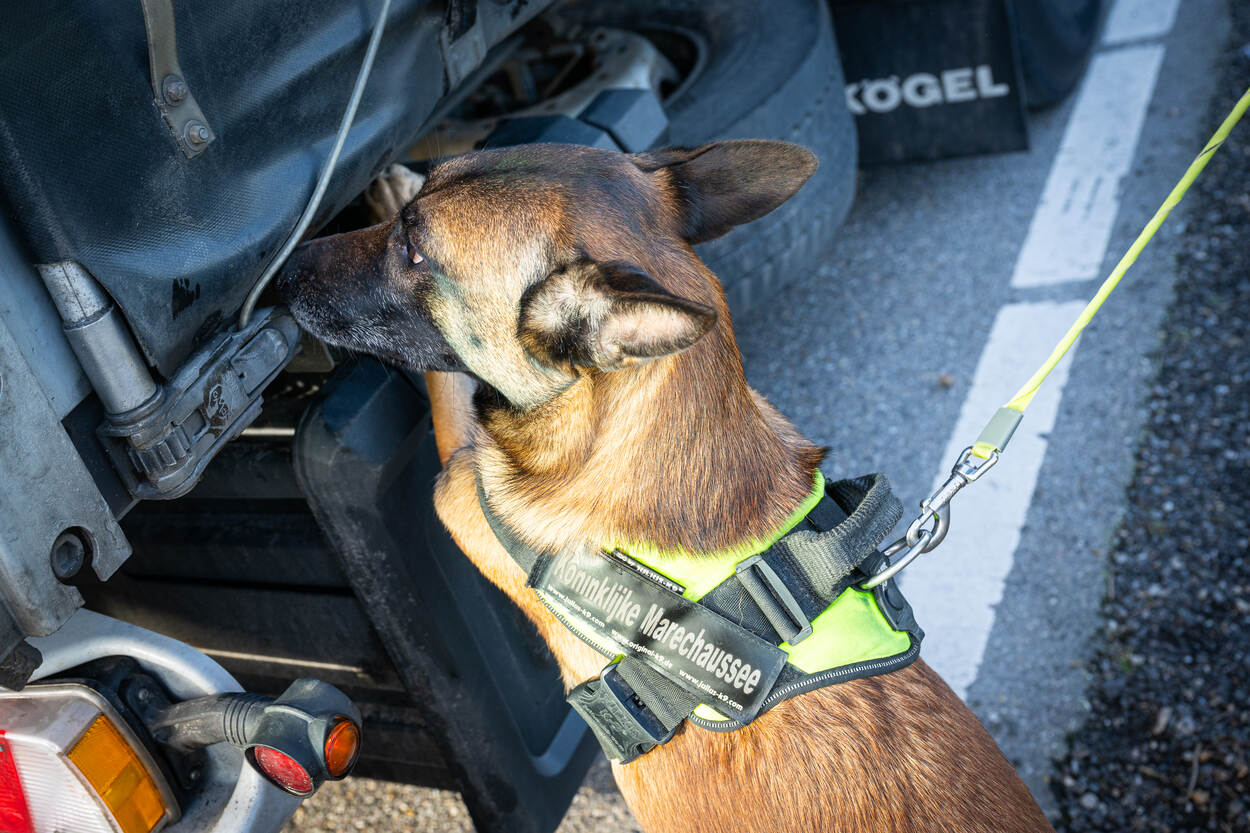 Hondengeleiders van de Koninklijke Marechaussee vinden regelmatig vreemdelingen in vrachtwagens die naar het Verenigd Koninkrijk willen gaan