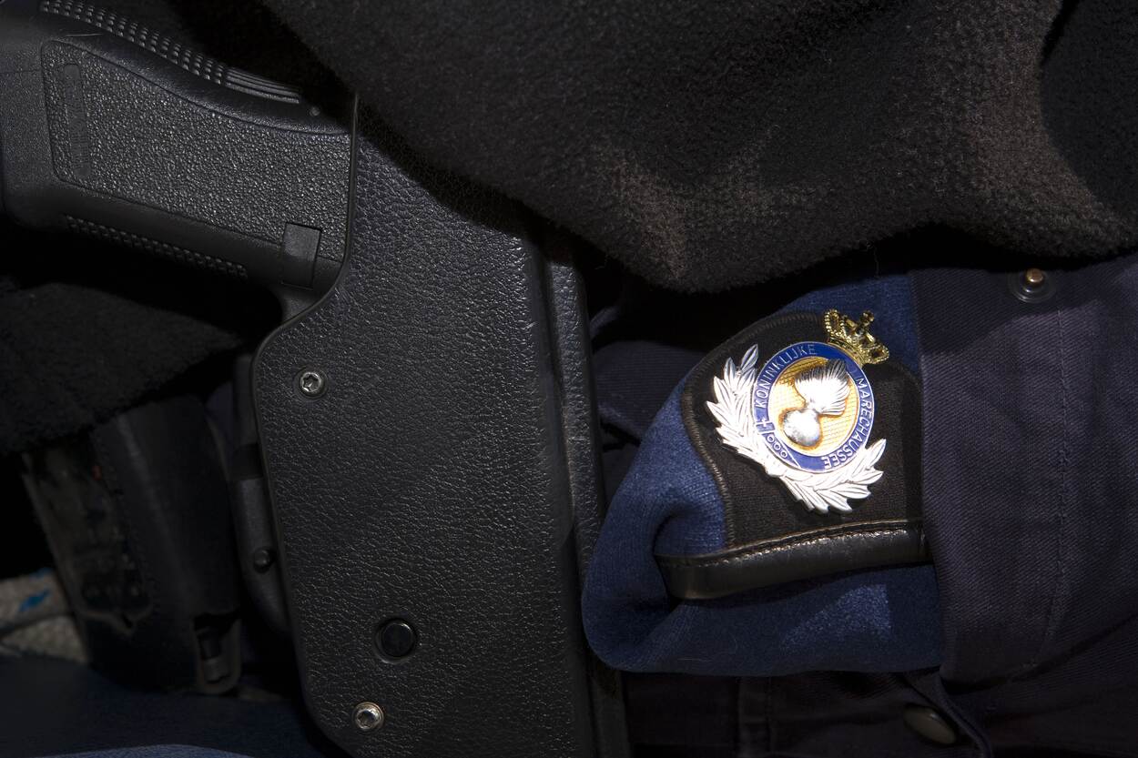 Een marechaussee die iemand boeit.