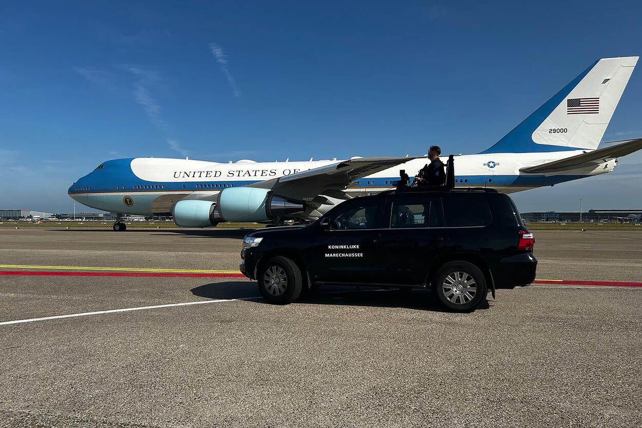 Voertuig van de GBB met op de achtergrond de Air Force One