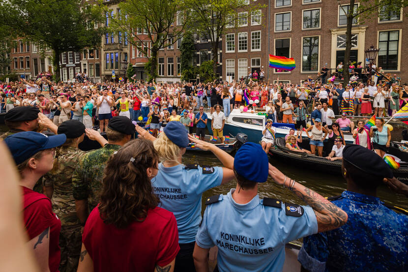 De Defensieboot vaart zaterdag 2 augustus weer mee met de Canal Parade, tijdens Pride Amsterdam. Aan boord stappen 80 opvarenden, zowel lhbti+’ers als sympathiserende collega’s. Volgens paradecommandant en brigadegeneraal bij de Koninklijke Marechaussee Sandra Keijer is de deelname van Defensie vooral in deze tijd heel belangrijk. “We grijpen veel aan om zichtbaar te zijn.”