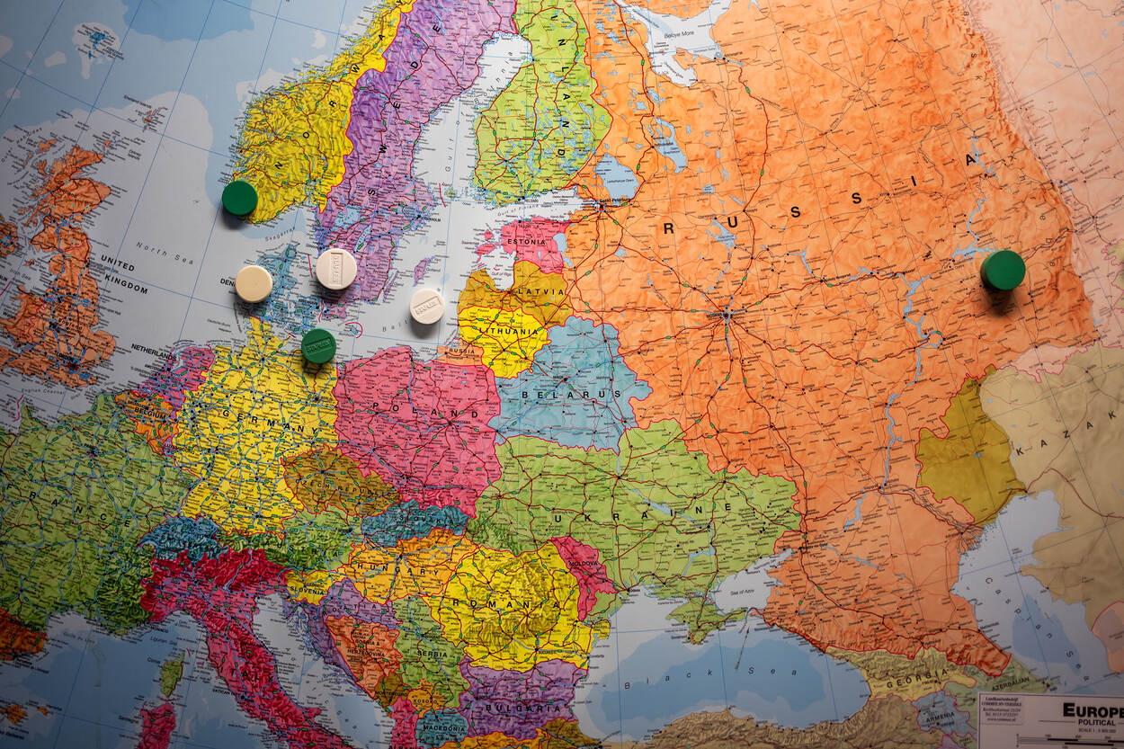Afbeelding atlas met fiches erop.