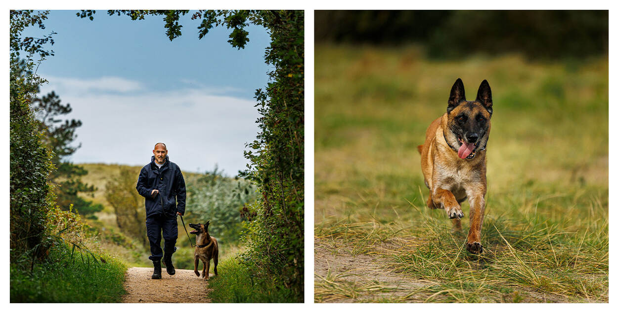 Hierna geeft Frank in het duingebied een korte demonstratie die het gehoorzame gedrag van Jack inderdaad bevestigt. “Ik hoop echt dat collega’s zich aanmelden en zich willen ontfermen over de gepensioneerde diensthonden”, besluit de adjudant. “Ze moeten alleen wel goed nadenken of het past in de gezinssituatie. Ik wist waar ik aan begon en had me mentaal voorbereid.”