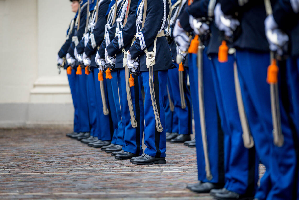 Marechaussees in ceremonieel tenue op linie.