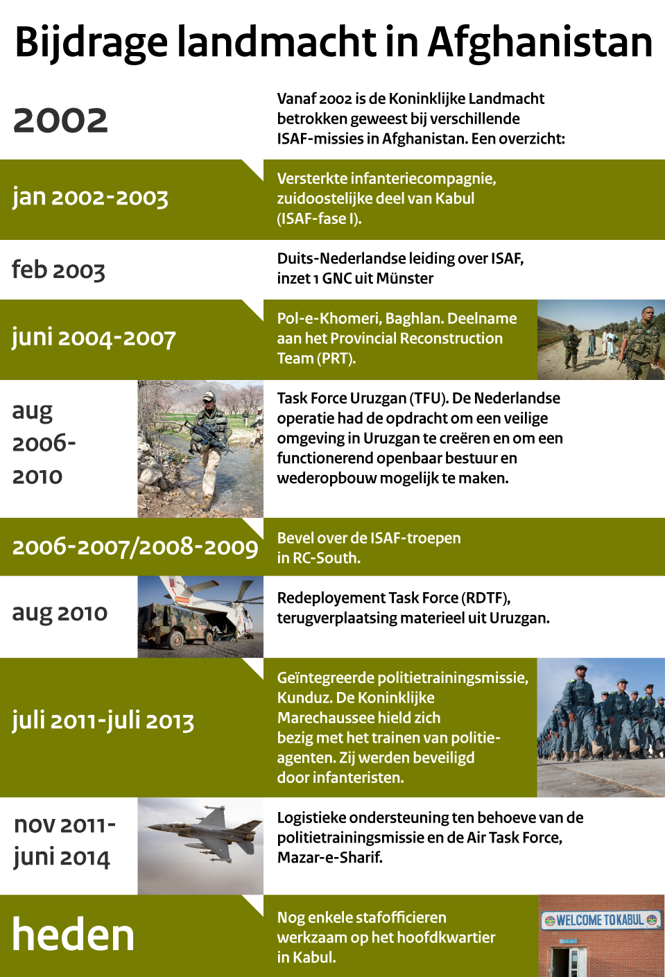 Nederlandse militairen helpen vanaf 2002 mee aan de veiligheid in Afghanistan. We hebben bijgedragen aan het opleiden van het Afghaanse veiligheidsapparaat, scholen gebouwd en betere gezondheidszorg ingevoerd. Ons land is om verschillende redenen betrokken geweest bij militaire missies in onder meer Uruzgan en Kunduz. Als NAVO-lid ondersteunen wij onze bondgenoten en levert ons land een bijdrage aan wederopbouw in conflictgebieden. Een sterk bestuur, infrastructuur en economie bevordert de stabiliteit in een land. Om dit te bereiken was het eerst belangrijk om de Taliban uit zijn macht te zetten. Deze machthebber onderdrukte bewust de ontwikkelingen van het land. Voor de internationale gemeenschap, waaronder Nederland, was dit een belangrijke reden om in te grijpen. Dankzij militaire inzet konden hulporganisaties makkelijker het land in om de Afghaanse bevolking te helpen. Met de trainingsmissie in Kunduz hebben Nederlandse militairen duizenden politieagenten opgeleid. Zij kunnen nu lezen en schrijven en hun kinderen motiveren naar school te gaan. Allemaal ontwikkelingen die het land vooruit helpen.