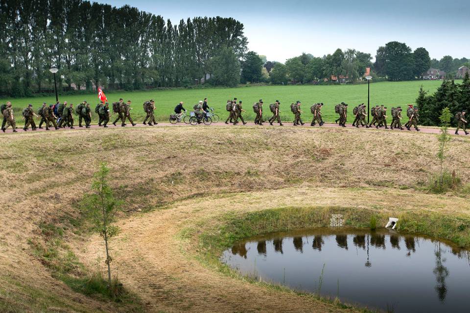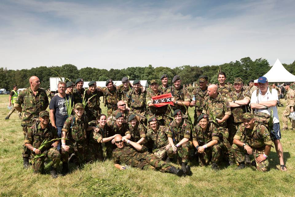 De Nijmeegse Vierdaagse is het grootste wandelevenement ter wereld met internationale allure. Militairen van verschillende nationaliteiten lopen gemiddeld 40 kilometer per dag met 10 kilo bepakking. Of 50 kilometer zonder. Succesvol afronden van deze afstandmars wordt beloond met een kruis voor betoonde marsvaardigheid. “En dat kruisje heb je aan het einde echt verdiend”, verzekert collega Van Es.