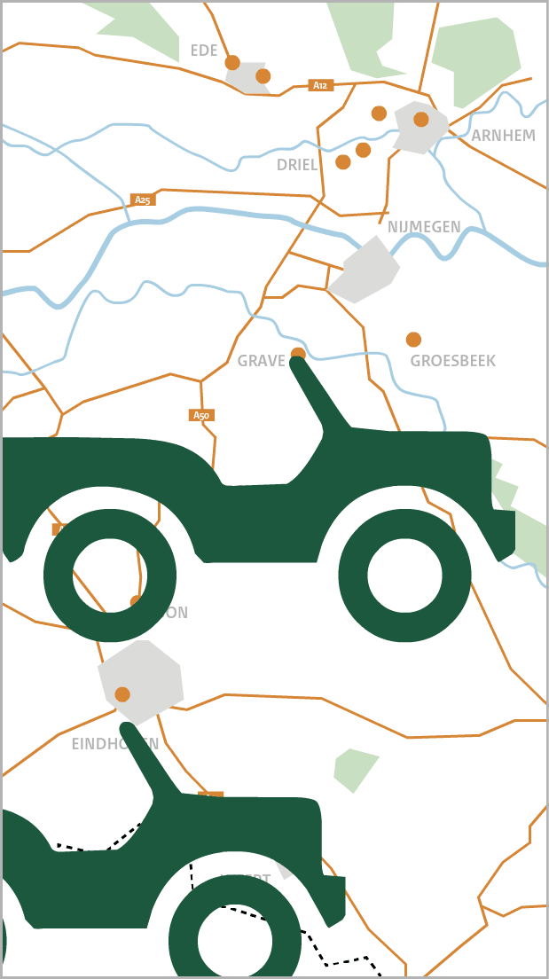 In oude ‘Willys’ jeeps rijden Britse veteranen over de tijdelijke brug naar de overzijde. Zij hebben 70 jaar geleden daadwerkelijk bij de brug gevochten. In totaal bestond de historische stoet uit 170 oude legervoertuigen.
