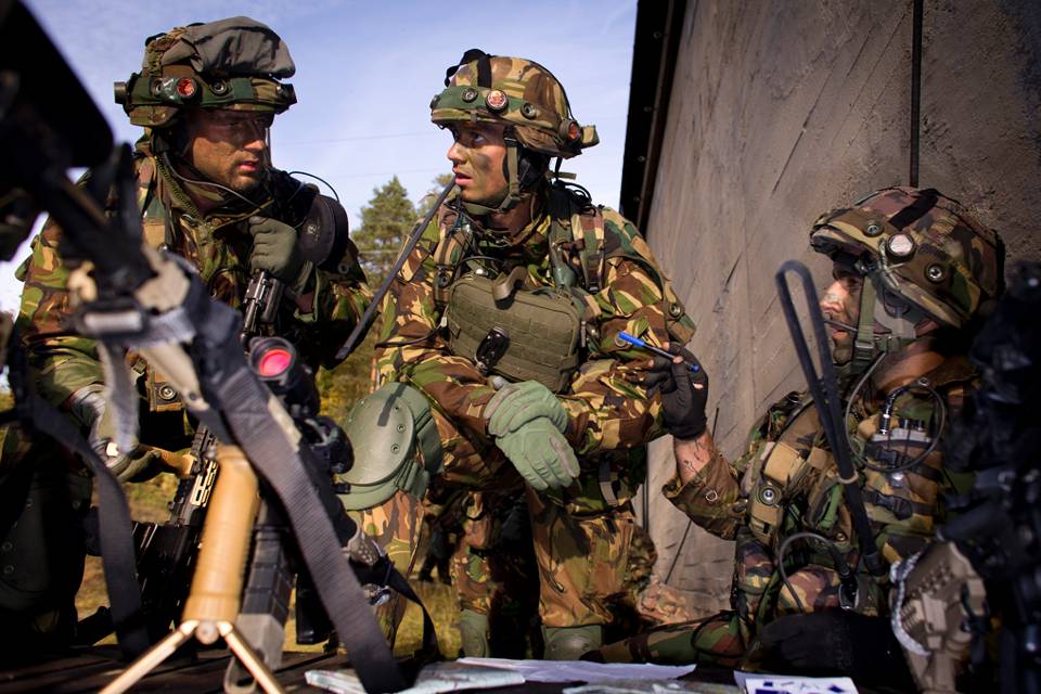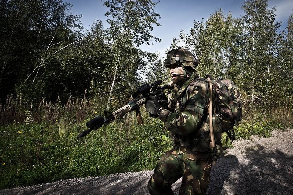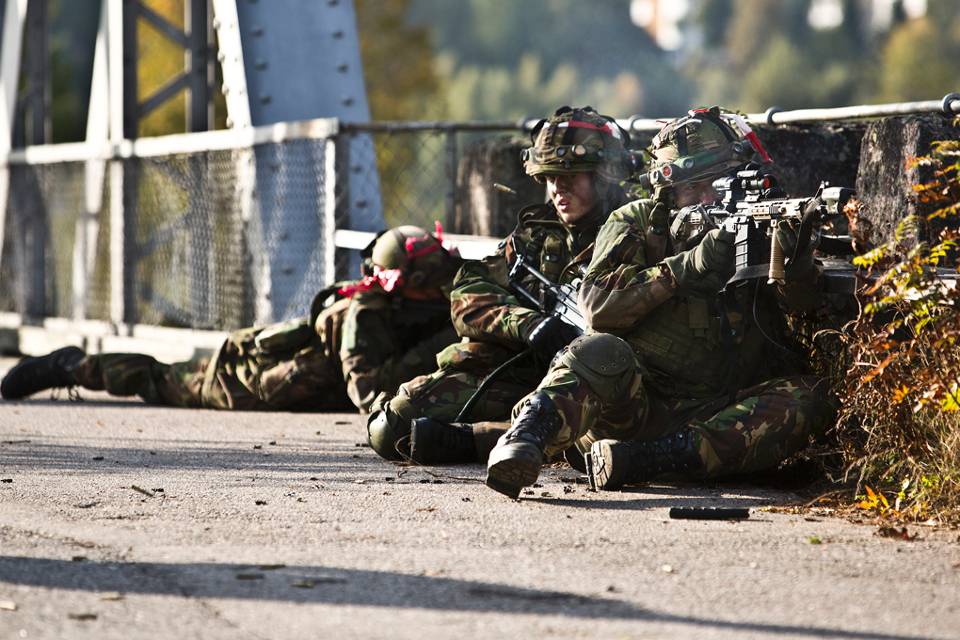 6 schepen zijn nodig om al het materieel naar het Noorse Rena te vervoeren. Na een grote wielverplaatsing komen de voertuigen begin september aan in Eemshaven. Het logistieke plaatje is buitengewoon complex omdat ook andere nationaliteiten ‘bijladen’. De 3.000 Nederlandse militairen reizen per vliegtuig naar het oefenterrein. In het scenario draait het om de bruggen en het vliegveld van Rena. 42 Pantserinfanteriebataljon Limburgse Jagers uit Oirschot, in de rol van oefenvijand, verzet zich met hand en tand tegen hun luchtmobiele ‘collega’s’. Nog voor de MAG-post is onderkend, knippert het MCTC-systeem (Mobile Combat Training Centre) op de helm van een genist. Tot zijn grote teleurstelling betekent dit ook echt game-over. “Ze zeiden dat het veilig was.” 11 Luchtmobiele Brigade laat zien waar ze in excelleert: met een diepe en verrassende air assault-actie trekken de infanteristen over meerdere assen richting de bruggen. Daar vormen ze een bruggenhoofd om de link-up te maken met het Noorse Telemark bataljon en de Deense CV90’s . Wie aan de bak moet, is het Pathfinder-peloton. De brigadeverkenners liggen dagenlang in het veld om de start- en landingsbaan in kaart te brengen. Sergeant-1 René: “Toen het gevecht eenmaal begon, zijn we non-stop bezig geweest. Een luchtlandingsoperatie, een bevoorradingsvlucht en de landing van parachutisten. Alles komt voorbij. Extra complex is dat wij altijd 2 petten op hebben. We zitten in het tactisch plaatje dus blijven zoveel mogelijk ongezien, maar we moeten ook de veiligheid waarborgen.” De ruige en indrukwekkende Noorse natuur biedt ongekende mogelijkheden voor gemechaniseerd optreden. Met de inbedding van veel pantsers laat de IRF-brigade, en dus de NAVO, zien over tanden te beschikken. Logisch, de snel inzetbare eenheid dient vooral ter afschrikking. (Foto: Forsvarets mediesenter) Rechtstreeks afkomstig van de herdenkingen rond Market Garden voegt een compagnie van 82nd Airborne Division zich bij de oefenende troepen. “Ook al doe je het kunstje nog zo vaak. Het optreden in multinationaal verband blijft uitdagend. Neem alleen al de verbindingen en het stroomlijnen van het planningsproces”, zegt plaatsvervangend bataljonscommandant 13 Infanteriebataljon majoor Nico Teerds. Situational awareness krijgen bij welke eenheid waar zit, blijkt nog knap lastig met zoveel landen in het veld. Noble Justification levert volgens commandant IRF-brigade brigadegeneraal Nico Geerts waardevolle lessen op. “Hier gebeurt het, tussen de mensen. Begrijpen we elkaar nu echt? Ik denk dat we heel ver zijn. Maar het finetunen, die laatste aspecten eruit halen, gebeurt nu pas.” (foto: Forsvarets mediesenter)