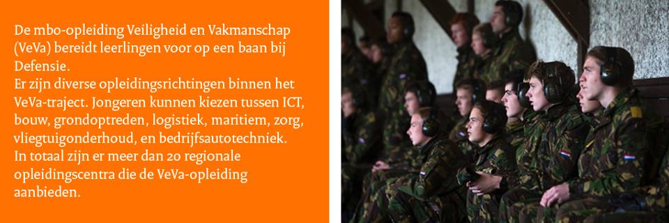 “Een loopbaan bij Defensie is mijn droom. Momenteel ben ik te jong om te solliciteren voor een baan als militair. Vandaar dat ik gekozen heb voor de VeVa-opleiding. Ik wil zo snel mogelijk bezig zijn met het vak. Ik koos voor grondoptreden omdat het avontuurlijk en interessant is. Deze bedrijfsoriëntatieweek vind ik geweldig. Lekker met je overall door de modder kruipen. Als een echte militair bezig zijn. Ik word er helemaal enthousiast van.”
