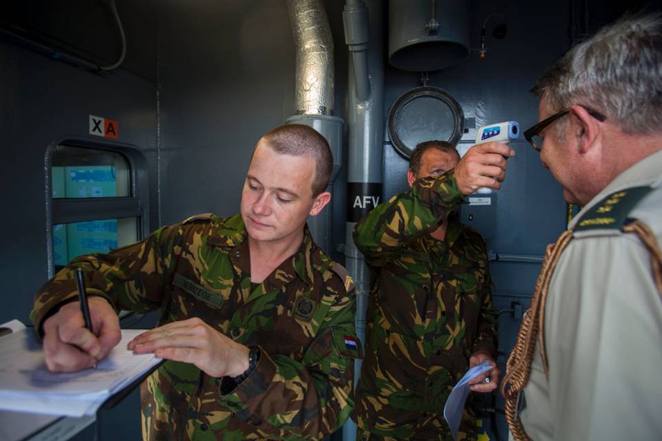 “Of ik ooit eerder gevaren heb? Ja, met zeilschepen en motorbootjes. Niet met het nieuwste en grootste schip van de Nederlandse marine. Toch heb ik geen last van zeeziekte. Een klein beetje na vertrek uit Den Helder, dat was alles. Het leven aan boord bevalt me eigenlijk wel. De eerste 2 weken waren we vooral ontzettend druk met oefenen. Stel iemand aan boord raakt besmet met ebola, dan zijn wij ervan. Door experts van het Centraal Militair Hospitaal zijn we vooraf uitstekend geïnformeerd. Daarnaast hebben we ons bekwaamd in quarantaineverpleging. Als het moet, kunnen we mensen geïsoleerd behandelen. Ik ben niet bang om zelf ebola te krijgen. Ten eerste weet iedereen aan boord hoe we de risico's kunnen minimaliseren en ten tweede kom ik zelf niet in contact met Afrikanen. Ik kom dit schip niet af.