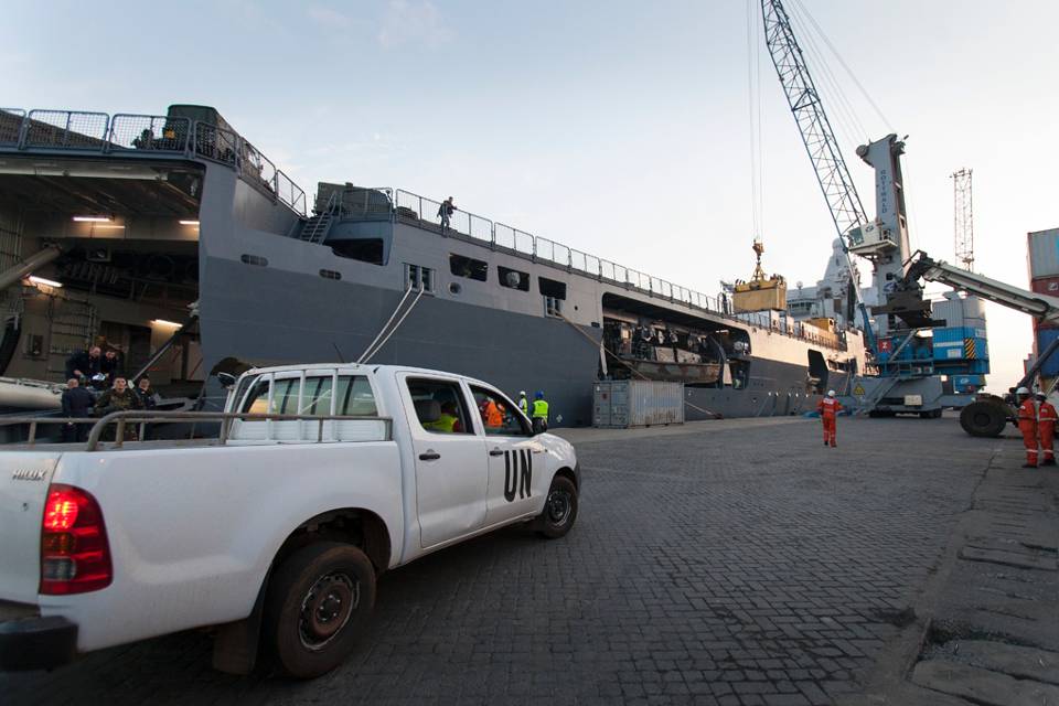 Het enorme schip was voor vertrek uit Europa maximaal beladen met onder meer ambulances, vrachtwagens, mobiele laboratoria, beschermende kleding en inrichting voor veldhospitalen. Nog voordat de Karel Doorman Monrovia binnenliep, besloot het kabinet om het JSS een tweede bevoorradingsronde te laten doen. De bemanning viert de kerstdagen dus in West-Afrika.