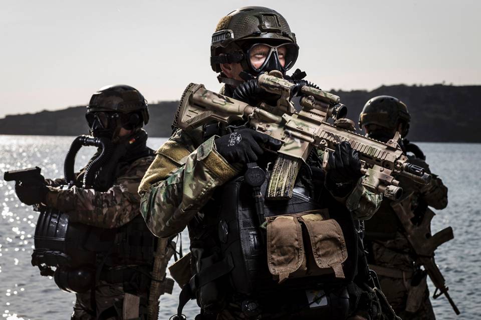 Het persoonlijk wapen van de commando, de Heckler & Koch 416, gaat mee onder water. Zodat de operator op land zijn opdracht kan voortzetten. Het zoute water vormt de grootste bedreiging voor het materieel.