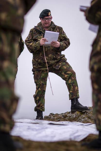 Kapiteins volgen op dit moment hun primaire vorming (PV) aan de Nederlandse Defensie Academie in Breda. Om de boeggolf aan kapiteins weg te werken, is de ‘paarse’ PV teruggebracht naar 1 week. Een noodgreep, want hierdoor is geen aandacht meer voor commandovoering op bataljons/battlegroup-niveau, doctrine, visie leidinggeven CLAS en gereedstelling. Thema’s die wél in de nieuwe 3-weekse kapiteinsopleiding van het Opleidings- en Trainingscommando (OTCo) terugkomen. “Voor toekomstige kapiteins wordt de cursus veel intensiever en groener”, oordeelt luitenant-kolonel Tom Dhont, hoofd Sectie Voortgezette Operationele Opleidingen en projectleider DLL. “Hoewel de pilot uitwijst dat officieren de lesstof niet als te zwaar ervaren. Vooral de dagen in het veld waarderen ze hoog.”