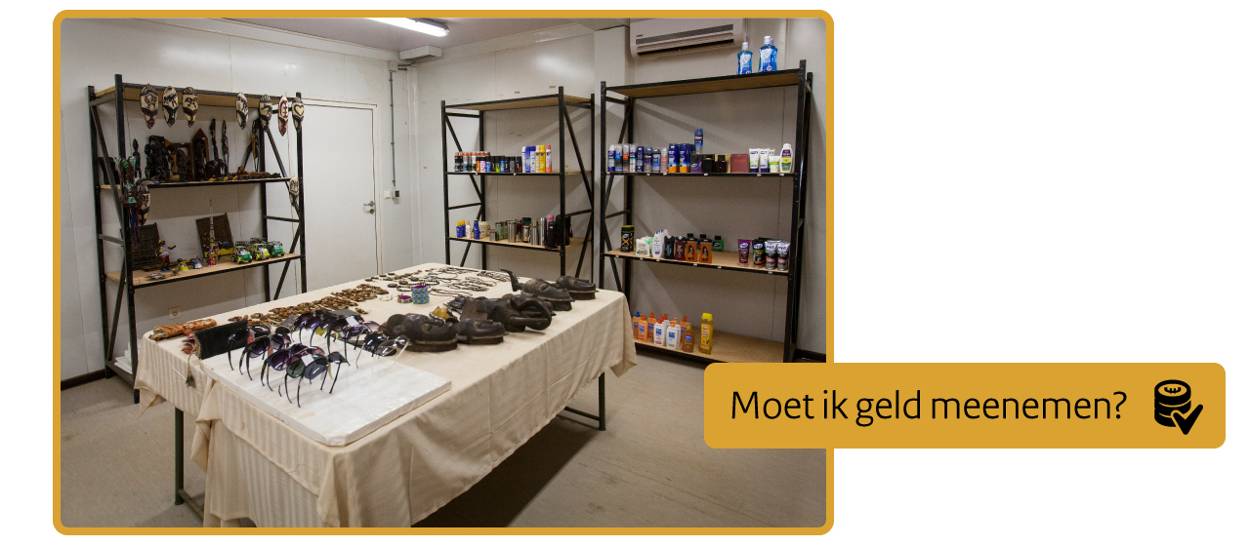 Eens in de 14 dagen komt de kassier uit Bamako. Sinds kort beschikt Castor over een lokaal gerund winkeltje waar je terecht kunt voor toiletartikelen, sigaretten en souvenirs. Let op: er moet betaald worden met de Malinese XOF (spreekt uit soffies). 10000 XOF is ongeveer 15 euro. Ook XOF kun je bij de kassier halen.