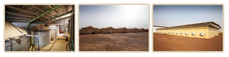 De tijd dat je werd gehuisvest in een tent is definitief voorbij. Het kamp beschikt over gepantserde chalets. Elk chalet bestaat uit 2 verdiepingen en elke verdieping herbergt 22 kamers. Je zult je kamer moeten delen met 1 of 2 collega’s, maar niet met meer. De airco houdt de temperatuur op een frisse 18 graden.