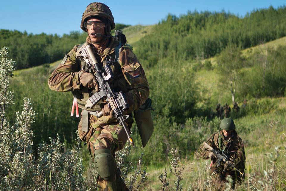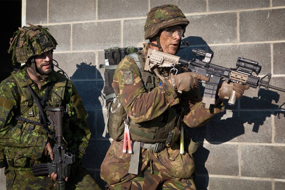 Ook op de grond werken de Nederlanders en Canadezen goed samen. Na een week van trainingen, volgt een fase met tactische scenario’s. Daarbij werken de beide compagnieën onder andere samen bij een aanval op een vijandelijk object.