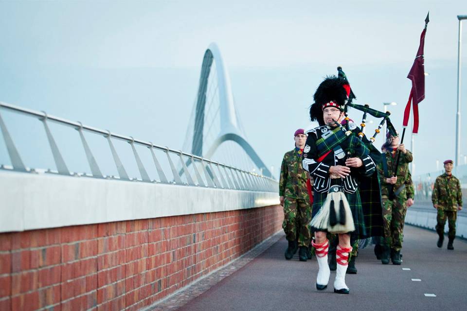 Als eerbetoon aan de geallieerde militairen die vochten voor onze vrijheid, wordt sinds 2014 dagelijks de Sunset March gelopen. Locatie: de nieuwe stadsbrug ‘de Oversteek’, vlakbij de Waal. Rond zonsondergang worden de 48 lichtmasten na elkaar ontstoken in het tempo van een trage mars. Met het aangaan van de lampen, loopt iedere avond een veteraan mee.