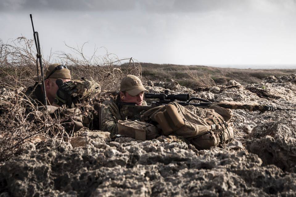Luchtmobiele snipers positioneren zich tussen de scherpe pikà-struiken.