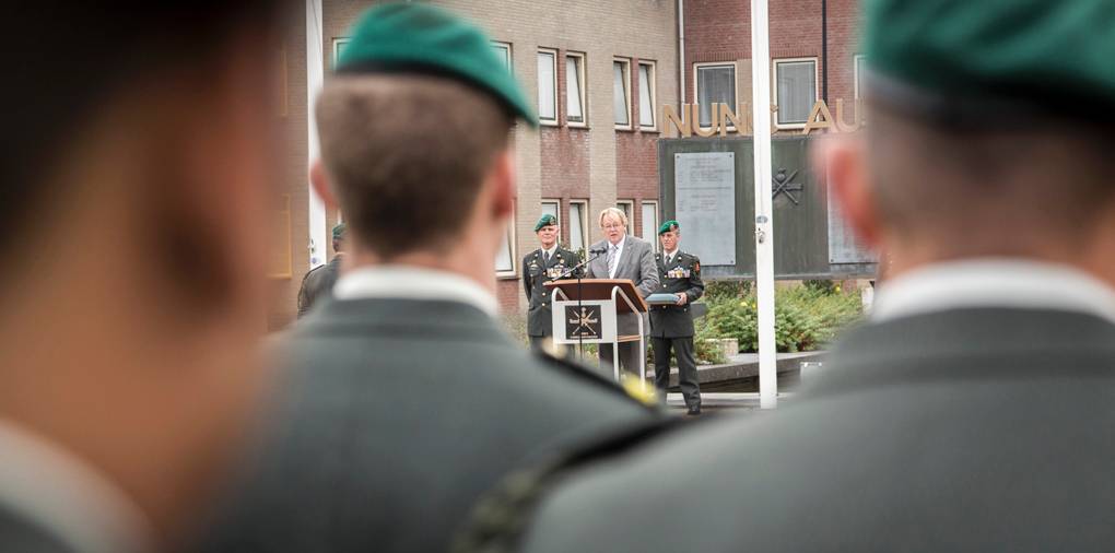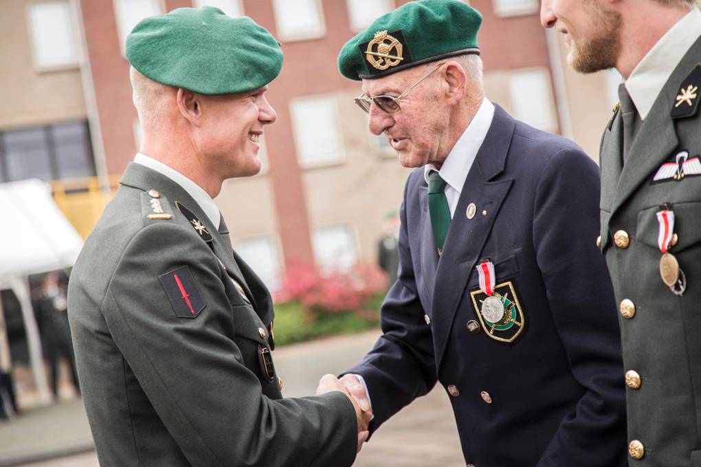 De commandant van het Korps Commandotroepen feliciteert de helden.