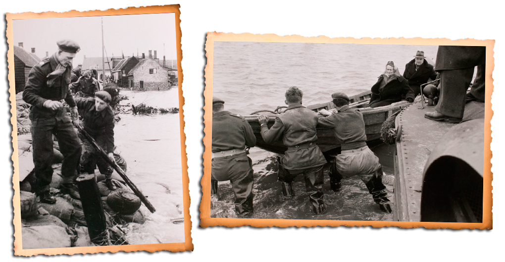 “Het was nog halfdonker toen we aankwamen in Nieuw-Vossemeer. In de verte zagen we een man, een vrouw en 2 kinderen in lakens gewikkeld op een dak zitten. Mijn commandant zei: ‘Willem, jij bent een goede zwemmer. Pak een touw en zwem naar dat huis.’ Het was ontzettend koud, er dreven zelfs sneeuwvlokjes in het water. Toen kwam ik ook nog eens met mijn benen vast te zitten in prikkeldraad. Maar het lukte me de familie te bereiken en ze te redden.”
