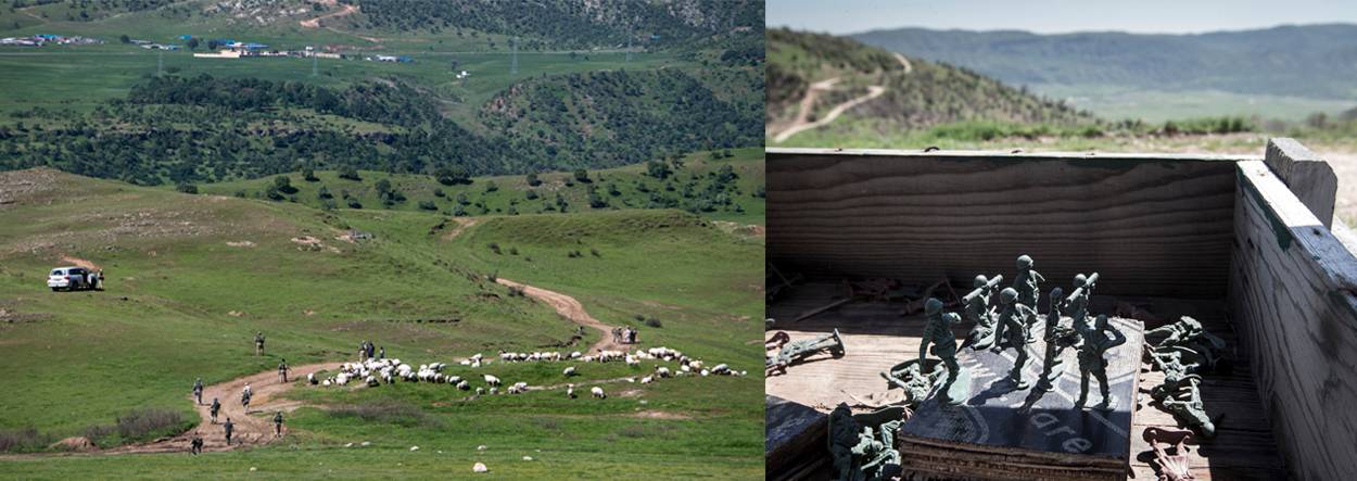 De felle zon draait naar zijn hoogste punt. Vogels tsjirpen, vlinders zoeken fladderend hun weg. Ruisend gras staat vol prachtige weidebloemen. Als je niet beter wist, zou je denken dat je in een vakantiebrochure bent gestapt. Maar nee, dit is Noord-Irak. De zaligmakende rust wordt ruw verstoord door een krakend salvo uit een M16, het wapen dat de Koerdische Peshmerga sinds kort hanteert. Het lawaai stuitert via de heuvels de vallei uit.