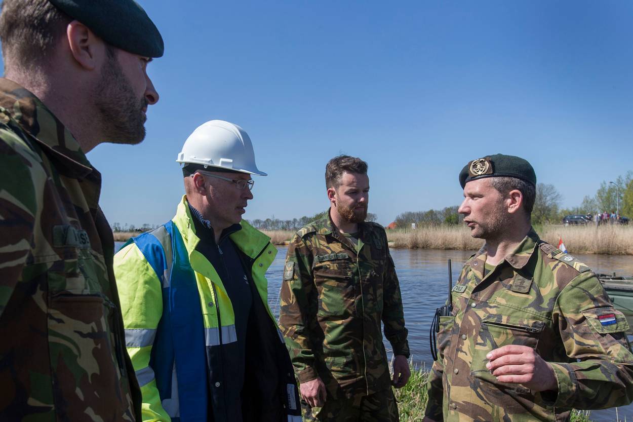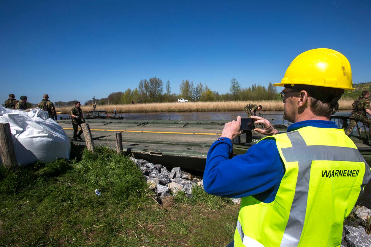 Voor Jan Berende, normaal onderhoudsmonteur bij het Waterschap, maar nu actief als waarnemer, is de kennismaking met Defensie een echte eye-opener. “Man, kijk toch eens wat voor spullen die gasten allemaal hebben. Pontons, duwboten, rolmatten, grote graafmachines; als het groot materieel moet zijn, bel dan maar met Defensie. En die mannen willen ook nog eens graag de handen uit de mouwen steken. Een prima partner om mee samen te werken, hoor”, vindt Jan.