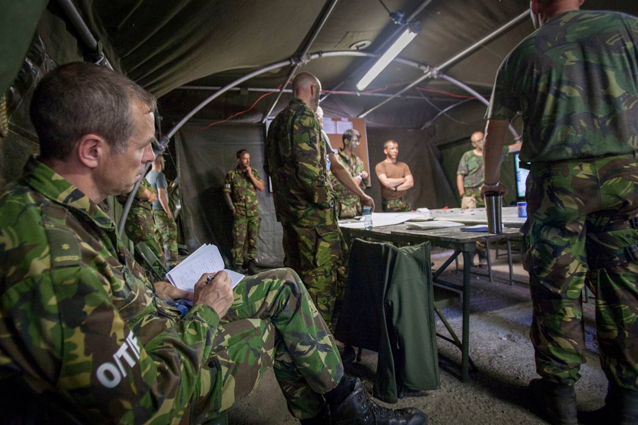 “Voor buitenstaanders lijkt het alsof de gereedstelling afhangt van een certificeringsweek. Niets is minder waar”, vervolgt Bloemberg. “Het zou oneerlijk zijn als het LTC dit liet afhangen van een paar dagen. OTE-ers zijn het complete traject aanwezig. Dit begint voor ons bij niveau 3, van de 6 niveaus die er zijn. De eerste 2 zijn oefeningen op groepsniveau en worden door de eenheden zelf getraind en getoetst. Vanaf niveau 3 (compagnies- en bataljonsniveau, red.) zijn wij er pas bij.” Om die reden reizen de OTE-ers van oefening naar oefening. “Waar gecertificeerd wordt, zijn wij”, verklaart de senior trainer.