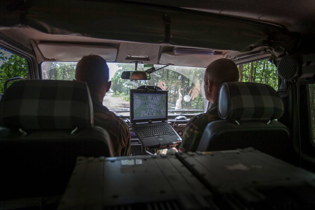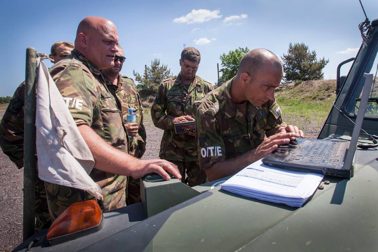 Met behulp van ELIAS - een command & control-applicatie voor ondersteuning van commandovoering bij landoptreden - rijden de OTE-ers naar de voor hen interessante acties op het oefenterrein.