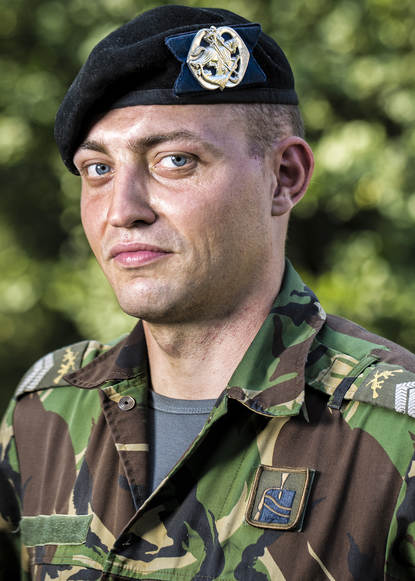 “Een ‘studiemannetje’ was ik niet. Na het behalen van mijn MBO-2 in de ICT dacht ik: ‘waarom ook niet de landmacht?’ Ik had geen plan, maar zag wel in dat de landmacht je overal kon brengen. Zo begon ik in 2006 bij de Verbindingsdienst, als kabellijnmedewerker. Bekabeling leggen en aansluiten, dat paste prima bij mijn vooropleiding. Een leuke tijd, zeker ook door mijn uitzending in 2009 naar Kandahar. Daarna was ik nog niet klaar met Defensie. Ik wilde ook de andere kant van de medaille zien. Iets bijzonders doen. De Fennek vond ik een heel mooi apparaat. En hoe trots die verkenners wel niet waren op hun zwarte baret met de zwaluwstaart: dat wilde ik ook!